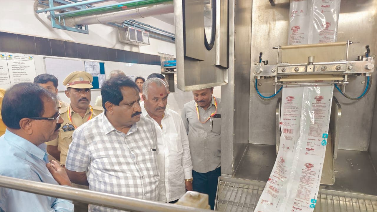ಹಾಲು ಉತ್ಪಾದಕರ ಶ್ರೇಯೋಭಿವೃದ್ಧಿಗೆ ಸರ್ಕಾರ ಎಲ್ಲಾ ಸಹಕಾರ ನೀಡಿ ವಿವಿಧ ವಿಶೇಷ ಯೋಜನೆಗಳಿಂದ ಸಾಕಾರಗೊಳಿಸುತ್ತಿದೆ. ಆದ್ದರಿಂದ ಕೆಎಂಎಫ್ ಮೂಲಕ ನಂದಿನಿ ಬ್ರಾಂಡ್ ಪ್ರಸಿದ್ಧಿ ಪಡೆಯಲು ಸಾಧ್ಯವಾಗಿದೆ. ಇಲ್ಲಿಯವರೆಗೆ ಬೇರೆ ಯಾವುದೇ ಹಾಲಿನ ಉತ್ಪನ್ನಗಳ ಕಂಪನಿಗಳು ಬಿಡುಗಡೆ ಮಾಡದಂತಹ ವಿಶಿಷ್ಟ ಉತ್ಪನ್ನಗಳನ್ನು ಪರಿಚಯಿಸಲು ಕೆಎಂಎಫ್ ಮುಂದಾಗಿದೆ. ಇದರಿಂದ ಪ್ರೋಟಿನ್ ಅಂಶವಿರುವ ಆಹಾರ ಮಾರುಕಟ್ಟೆಯಲ್ಲಿ ನಂದಿನಿ ತನ್ನದೇ ಆದ ಛಾಪು ಮೂಡಿಸಿದೆ ಎಂದರು.ಉತ್ಪನ್ನಗಳ ತಯಾರಿಕೆ ವೀಕ್ಷಣೆ: ನಂದಿನಿ ಉತ್ಪನ್ನಗಳಾದ ಹಾಲು, ಮೊಸರು, ತುಪ್ಪ ಹಾಗೂ ಪನ್ನೀರು, ದೋಸೆ ಹಿಟ್ಟು ಘಟಕದ ಕಾರ್ಮಿಕರ ಜೊತೆ ಮಾತನಾಡಿದರು. ನಂದಿನಿ ಉತ್ಪನ್ನಗಳ ತಯಾರಿಕೆ ಗುಣಮಟ್ಟದಲ್ಲಿ ಯಾವುದೇ ರೀತಿಯ ರಾಜಿ ಇಲ್ಲ. ಆದ್ದರಿಂದ ಕಾರ್ಮಿಕರು ಸಾಕಷ್ಟು ಜವಾಬ್ದಾರಿ ವಹಿಸಿ ಕೆಲಸ ಮಾಡಬೇಕು ಎಂದು ಸೂಚಿಸಿದರು.