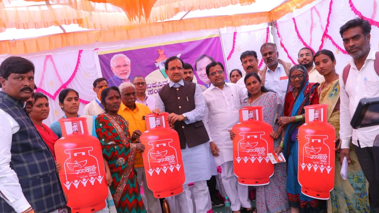ಔರಾದ್‌ ತಾಲೂಕಿನ ಚಿಂತಾಕಿ ಹಾಗೂ ಎಕಂಬಾ ಗ್ರಾಮಗಳಲ್ಲಿ ಹಮ್ಮಿಕೊಳ್ಳಲಾದ ವಿಕಸಿತ ಭಾರತ ಸಂಕಲ್ಪ ಯಾತ್ರೆಯಲ್ಲಿ ಕೇಂದ್ರ ಸಚಿವ ಭಗವಂತ ಖೂಬಾ ಅವರು ಫಲಾನುಭವಿಗಳಿಗೆ ಗ್ಯಾಸ್ ಸಿಲಿಂಡರ್ ವಿತರಿಸಿದರು.