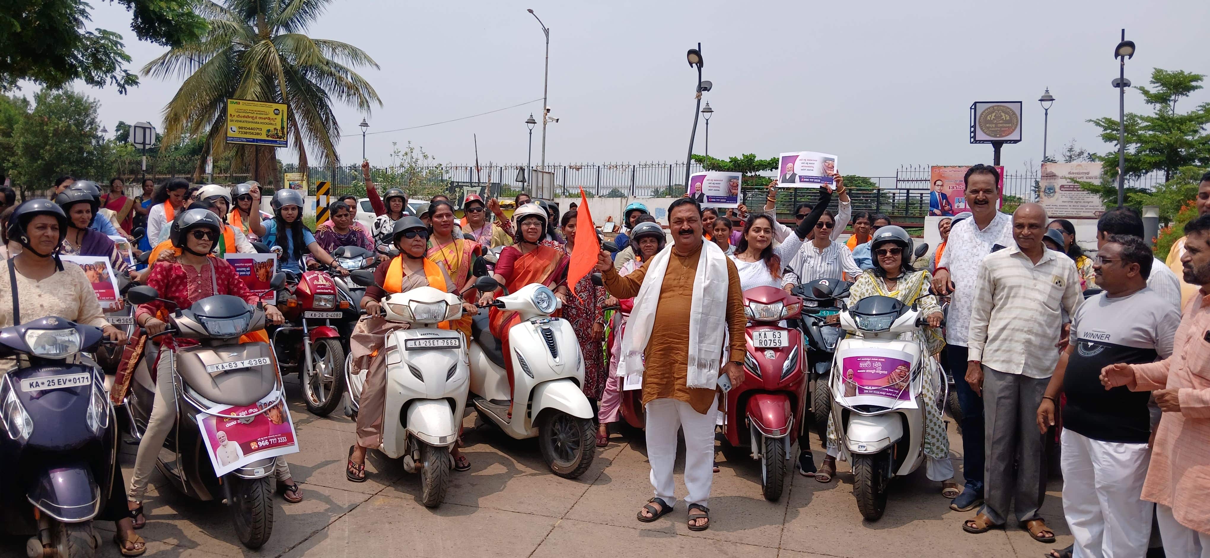 ಕೇಂದ್ರ ಸರ್ಕಾರ ಜಾರಿಗೆ ತಂದಿರುವ ವಿಕಸಿತ ಭಾರತದ ಸಂಕಲ್ಪದ ಶೇ. 33ರಷ್ಟು ಮಹಿಳಾ ಮೀಸಲಾತಿ ನಾರಿಶಕ್ತಿ ವಂದನ ಅಧಿನಿಯಮ 2026 ಕುರಿತು ಸಾರ್ವಜನಿಕರಲ್ಲಿ ಜಾಗೃತಿ ಮೂಡಿಸಲು ಬಿಜೆಪಿ ಜಿಲ್ಲಾ ಮಹಿಳಾ ಮೋರ್ಚಾ ವತಿಯಿಂದ ಸೋಮವಾರ ನಗರದಲ್ಲಿ ಬೃಹತ್ ಬೈಕ್ ರ್ಯಾ ಲಿ ನಡೆಸಲಾಯಿತು.