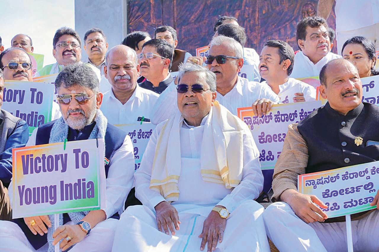 ಕೇಂದ್ರ ಸರ್ಕಾರ ಮತ್ತು ಬಿಜೆಪಿ ದ್ವೇಷದಲ್ಲಿ ನಿರತವಾಗಿದೆ. ಕಾಂಗ್ರೆಸ್ ಮುಖಂಡರನ್ನು ಅಪರಾಧಿ ಸ್ಥಾನದಲ್ಲಿ ನಿಲ್ಲಿಸುವ ಕುತಂತ್ರದ ಕೆಲಸ ಮಾಡುತ್ತಿದೆ. ಆದರೆ ಇದರ ವಿರುದ್ಧ ಕಾಂಗ್ರೆಸ್ ಪಕ್ಷ ರಾಜ್ಯ ಮಾತ್ರವಲ್ಲ, ದೇಶದೆಲ್ಲೆಡೆ ಹೋರಾಟ ನಡೆಸಲಿದೆ. ದೇಶದ ತುಂಬಾ ಭ್ರಷ್ಟಾಚಾರ ತಾಂಡವಾಡುತ್ತಿದೆ. ಹಣದುಬ್ಬರ, ನಿರುದ್ಯೋಗ ಹೆಚ್ಚಾಗಿದ್ದು ತಮ್ಮ ವೈಫಲ್ಯ ಮುಚ್ಚಿಕೊಳ್ಳಲು ಬೇರೆ ಬೇರೆ ವಿಚಾರಗಳನ್ನು ತೆಗೆಯುತ್ತಿದೆ. ಸುಳ್ಳು ಅಪಪ್ರಚಾರದಲ್ಲಿ ನಿರತವಾಗಿದೆ. ಇದರ ವಿರುದ್ಧ ಕಾಂಗ್ರೆಸ್ ಪ್ರತಿಭಟನೆ ಮುಂದುವರಿಸಲಿದೆ ಎಂದರು.ಡಿಸಿಎಂ ಡಿ.ಕೆ.ಶಿವಕುಮಾರ್ ಮಾತನಾಡಿ, ನ್ಯಾಷನಲ್ ಹೆರಾಲ್ಡ್ ಈ ದೇಶದ ಆಸ್ತಿ. ದ್ವೇಷ ರಾಜಕಾರಣ ಬಿಜೆಪಿ ಆಸ್ತಿ. ಸತ್ಯಕ್ಕೆ ಸಾವಿಲ್ಲ, ಸುಳ್ಳು ಕೇಸ್ಗಳಿಗೆ ಆಯುಷ್ಯವಿಲ್ಲ ಎಂಬುದಕ್ಕೆ ಮಂಗಳವಾರ ಬಂದ ನ್ಯಾಯಾಲಯದ ಆದೇಶವೇ ಸಾಕ್ಷಿ. ನಮ್ಮನ್ನು ಪಿತೂರಿಯಿಂದ ಸೋಲಿಸಲು ಸಾಧ್ಯವಿಲ್ಲ, ದ್ವೇಷದಿಂದ ಕುಗ್ಗಿಸಲು ಸಾಧ್ಯವಿಲ್ಲ. ಕೇಂದ್ರ ಸರ್ಕಾರದ ವಿರುದ್ಧ ಜಿಲ್ಲಾ ಮತ್ತು ತಾಲೂಕು ಮಟ್ಟದಲ್ಲಿ ಹೋರಾಟ ನಡೆಸಲಾಗುವುದು ಎಂದರು.