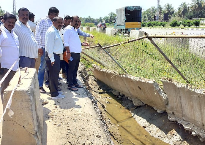 ರಾಷ್ಟ್ರೀಯ ಹೆದ್ದಾರಿಯಲ್ಲಿ ಮುರಿದು ಬಿದ್ದ ಉಕ್ಕಿನ ಬೇಲಿ, ಕುಸಿದು ಬಿದ್ದ ಸೇತುವೆಗಳು, ಚರಂಡಿ ಹಾಗೂ ಸರ್ವೀಸ್ ರಸ್ತೆಯ ಅಕ್ರಮ ಒತ್ತುವರಿಯನ್ನು ಅಧಿಕಾರಿಗಳೊಂದಿಗೆ ವೀಕ್ಷಿಸಿ ಇವುಗಳ ದುರಸ್ತಿಗೆ ಅಗತ್ಯ ಕ್ರಮಕೈಗೊಳ್ಳುವಂತೆ ಸೂಚಿಸಿದರು.ನಿಡಘಟ್ಟ ಗ್ರಾಮದ ರಸ್ತೆಯ ಸರ್ವೀಸ್ ರಸ್ತೆಯಲ್ಲಿ ಅಕ್ರಮವಾಗಿ ಒತ್ತುವರಿ ಮಾಡಿಕೊಂಡು ಹಂಗಾಮಿಯವಾಗಿ ಅಂಗಡಿ, ಮನೆಗಳು, ಹೋಟೆಲ್ ನಾಮಫಲಕ ತೆರವುಗೊಳಿಸಬೇಕು. ಮಳೆ ನೀರು ಸರಾಗವಾಗಿ ಹರಿಯುವಂತೆ ಅಗತ್ಯ ಕ್ರಮ ವಹಿಸುವಂತೆ ಸೂಚಿಸಿದರು.