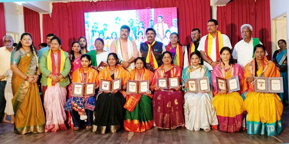 ಸಾಂಸ್ಕೃತಿಕ ಕಾವ್ಯೋತ್ಸವ ಸಂಭ್ರಮದ ಅಂಗವಾಗಿ ಸಾಧಕರಿಗೆ ರಾಷ್ಟ್ರೀಯ ಪ್ರಶಸ್ತಿ ಪುರಸ್ಕಾರ ಸಮಾರಂಭದಲ್ಲಿ ಮಡಿಕೇರಿ ತಾಲೂಕು ಕನ್ನಡ ಸಾಹಿತ್ಯ ಪರಿಷತ್ ಅಧ್ಯಕ್ಷೆ ಕಡ್ಲೇರ ತುಳಸಿ ಮೋಹನ್ ಅವರಿಗೆ ನಾಲ್ವಡಿ ಕೃಷ್ಣರಾಜ ಒಡೆಯರ್ ರಾಷ್ಟ್ರೀಯ ಪ್ರಶಸ್ತಿ, ಶನಿವಾರ ಸಂತೆಯ ಸಾಹಿತಿ ಶ.ಗ.ನಯನತಾರ ಅವರಿಗೆ ರಾಷ್ಟ್ರೀಯ ಸಾಹಿತ್ಯ ರತ್ನ ಪ್ರಶಸ್ತಿ ನೀಡಿ ಗೌರವಿಸಲಾಯಿತು.