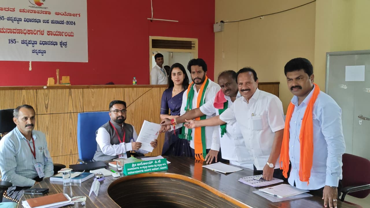ಚನ್ನಪಟ್ಟಣದಲ್ಲಿ ನಿಖಿಲ್ ನಾಮಪತ್ರ ಸಲ್ಲಿಕೆ ವೇಳೆ ಎನ್ಡಿಎ ಶಕ್ತಿಪ್ರದರ್ಶನ ನಡೆಸಿತು.