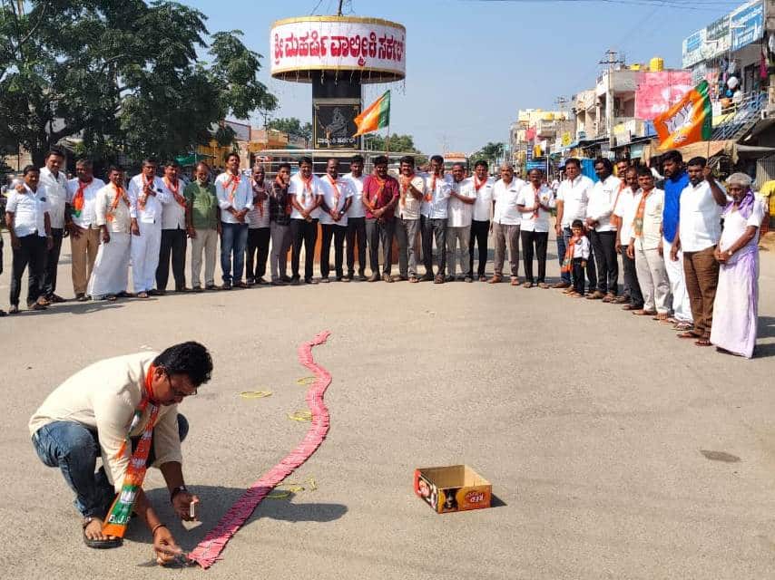 ಕನಕಗಿರಿ: ಬಿಹಾರ ಚುನಾವಣೆಯಲ್ಲಿ ಎನ್ ಡಿಎ ಮೈತ್ರಿಕೂಟ ಭರ್ಜರಿ ಗೆಲುವಿನ ಹಿನ್ನೆಲೆಯಲ್ಲಿ ಇಲ್ಲಿನ ವಾಲ್ಮೀಕಿ ವೃತ್ತದಲ್ಲಿ ಬಿಜೆಪಿ ಕಾರ್ಯಕರ್ತರು ಶುಕ್ರವಾರ ಪಟಾಕಿ ಸಿಡಿಸಿ ವಿಜಯೋತ್ಸವ ಆಚರಿಸಿದರು.