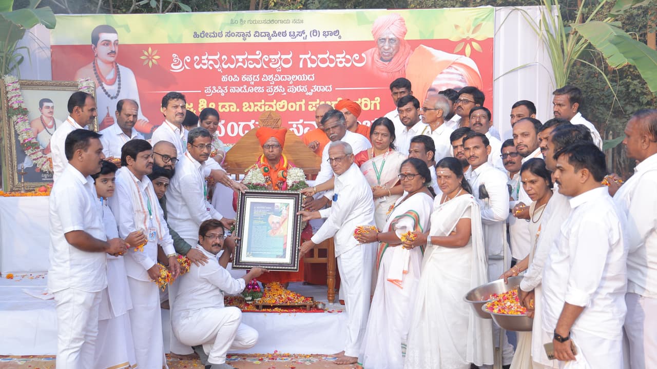 ಭಾಲ್ಕಿಯ ಕರಡ್ಯಾಳ ಚನ್ನಬಸವೇಶ್ವರ ಗುರುಕುಲದಲ್ಲಿ ಕಾಣಿಕೆಯ 25 ಲಕ್ಷ ರು. ಚೆಕ್ ಹಿಂತಿರುಗಿಸಿದ ಪೂಜ್ಯರು । ಹಿರೇಮಠ ಸಂಸ್ಥಾನ ವಿದ್ಯಾಪೀಠ ಟ್ರಸ್ಟ್ ವತಿಯಿಂದ ಭಾನುವಾರ ಗುರುಕುಲದಲ್ಲಿ ಡಾ. ಬಸವಲಿಂಗ ಪಟ್ಟದ್ದೇವರ ಗುರುವಂದನಾ ಸಂಭ್ರಮ ಆಯೋಜಿಸಲಾಗಿತ್ತು.