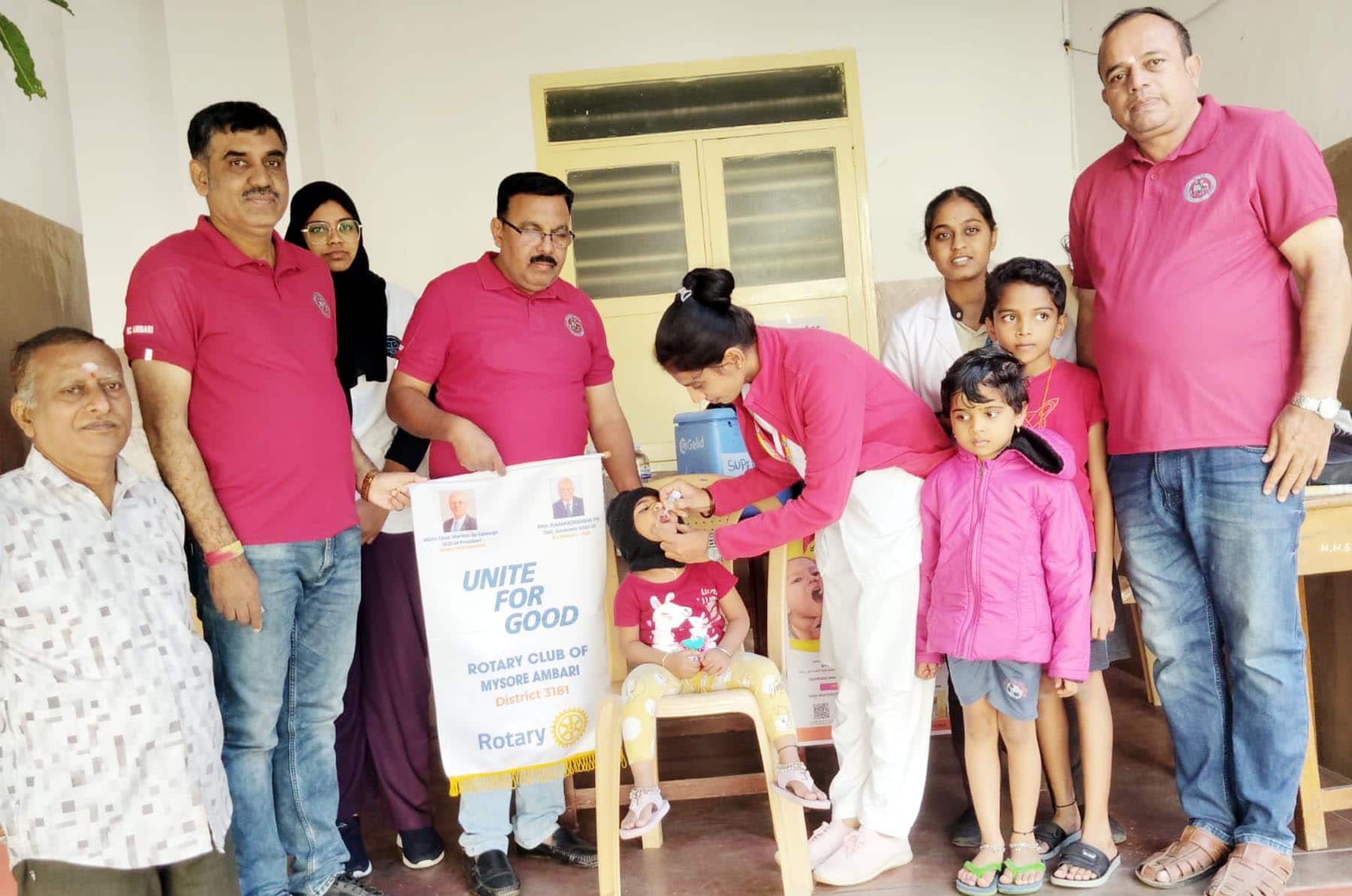 ಕನ್ನಡಪ್ರಭ ವಾರ್ತೆ ಮೈಸೂರುನಗರದ ರೋಟರಿ ಮೈಸೂರು ಅಂಬಾರಿ ವತಿಯಿಂದ ಪೋಲಿಯೋ ಹನಿ ಹಾಕಲಾಯಿತು.ನಿರ್ಮಲ ಕಾನ್ವೆಂಟ್ ಶಾಲೆಯಲ್ಲಿ ರೋಟರಿ ಮೈಸೂರು ಅಂಬಾರಿ ಅಧ್ಯಕ್ಷ ಹರೀಶ್, ಕಾರ್ಯದರ್ಶಿ ವಿ. ಮಂಜುನಾಥ್, ಎಲ್. ಜಗದೀಶ್, ರವಿಚಂದ್ರ ಮತ್ತು ದಾದಿಯರು, ನರ್ಸಿಂಗ್ ವಿದ್ಯಾರ್ಥಿಗಳು ಪಾಲ್ಗೊಂಡಿದ್ದರು. ಎರಡು ಹನಿಗಳು ಪೋಲಿಯೋ ವಿರುದ್ಧ ನಿರಂತರ ಗೆಲುವಾಗಿದೆ. ಭಾರತವು ಪೋಲಿಯೋ ಮುಕ್ತವಾಗಿದೆ. ಆದರೆ ಕೆಲವು ದೇಶಗಳಲ್ಲಿ ಪೋಲಿಯೋ ಇನ್ನೂ ಭೀತಿಯನ್ನುಂಟು ಮಾಡುತ್ತಿದ್ದು, ನಮ್ಮ ದೇಶದಲ್ಲೂ ಮರಳುವ ಸಾಧ್ಯತೆ ಇದೆ. ನಿಮ್ಮ ಮಗುವಿಗೆ ಪ್ರತಿ ಬಾರಿ ಎರಡು ಬಾರಿ ಪೋಲಿಯೋ ಹನಿ ಹಾಕಿಸಿ ಸಂಪೂರ್ಣ ರಕ್ಷಣೆಯನ್ನು ಖಚಿತಪಡಿಸಿಕೊಳ್ಳಿ ಎಂದು ಪಲ್ಸ್ ಪೋಲಿಯೋ ಚೇರ್ಮನ್ ಜಗದೀಶ್ ತಿಳಿಸಿದರು.