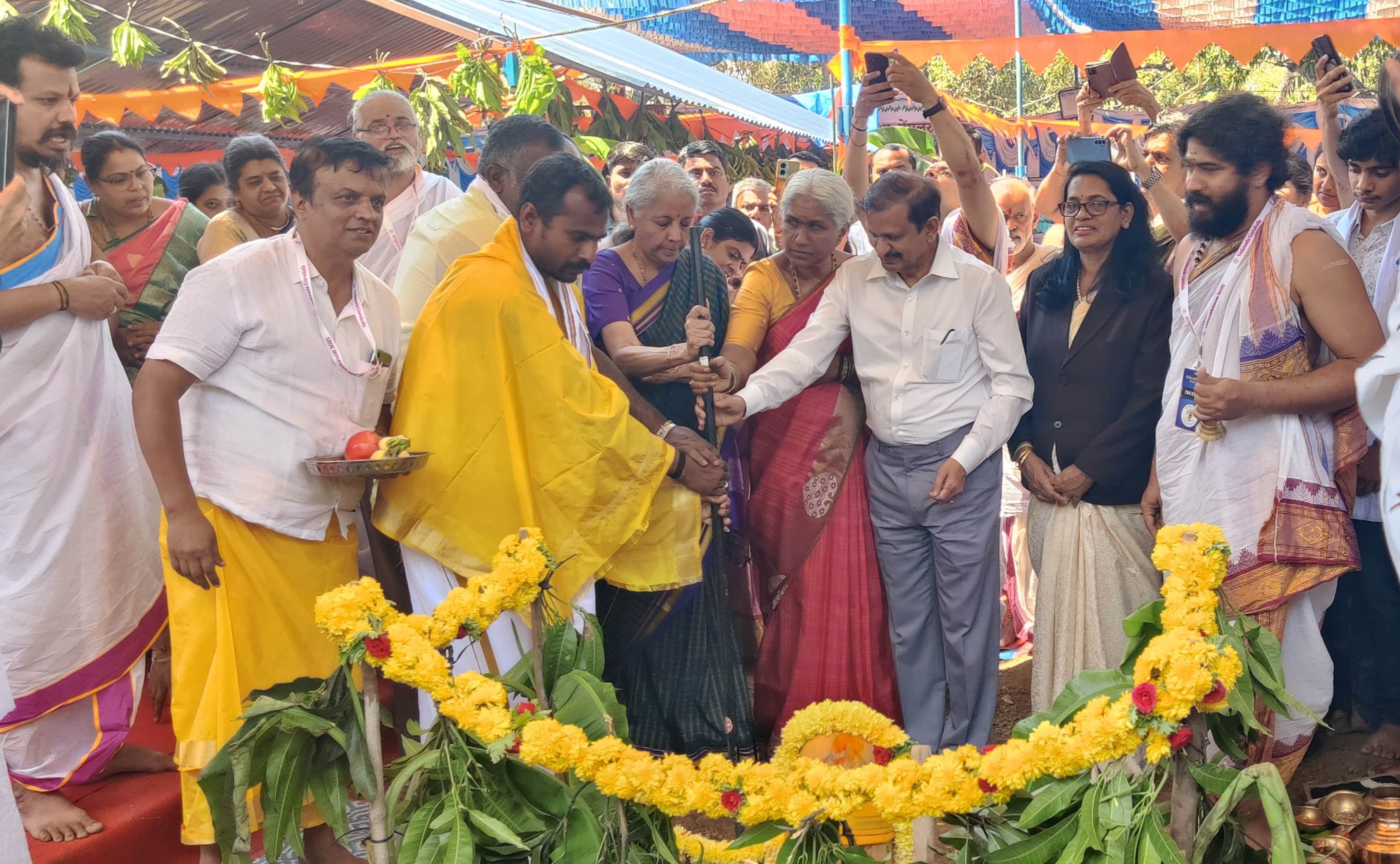 ರಾಮನಗರ ತಾಲೂಕಿನ ಬನ್ನಿಕುಪ್ಪೆ ಗ್ರಾಮದಲ್ಲಿ ವೇದ ವಿದ್ಯಾವಿಹಾರದ ವೇದನಾದ ಗುರುಕುಲ ನಿರ್ಮಾಣಕ್ಕೆ ವಿತ್ತ ಸಚಿವೆ ನಿರ್ಮಲಾ ಸೀತಾರಾಮನ್ ಭೂಮಿಪೂಜೆ ನೆರವೇರಿಸಿದರು.