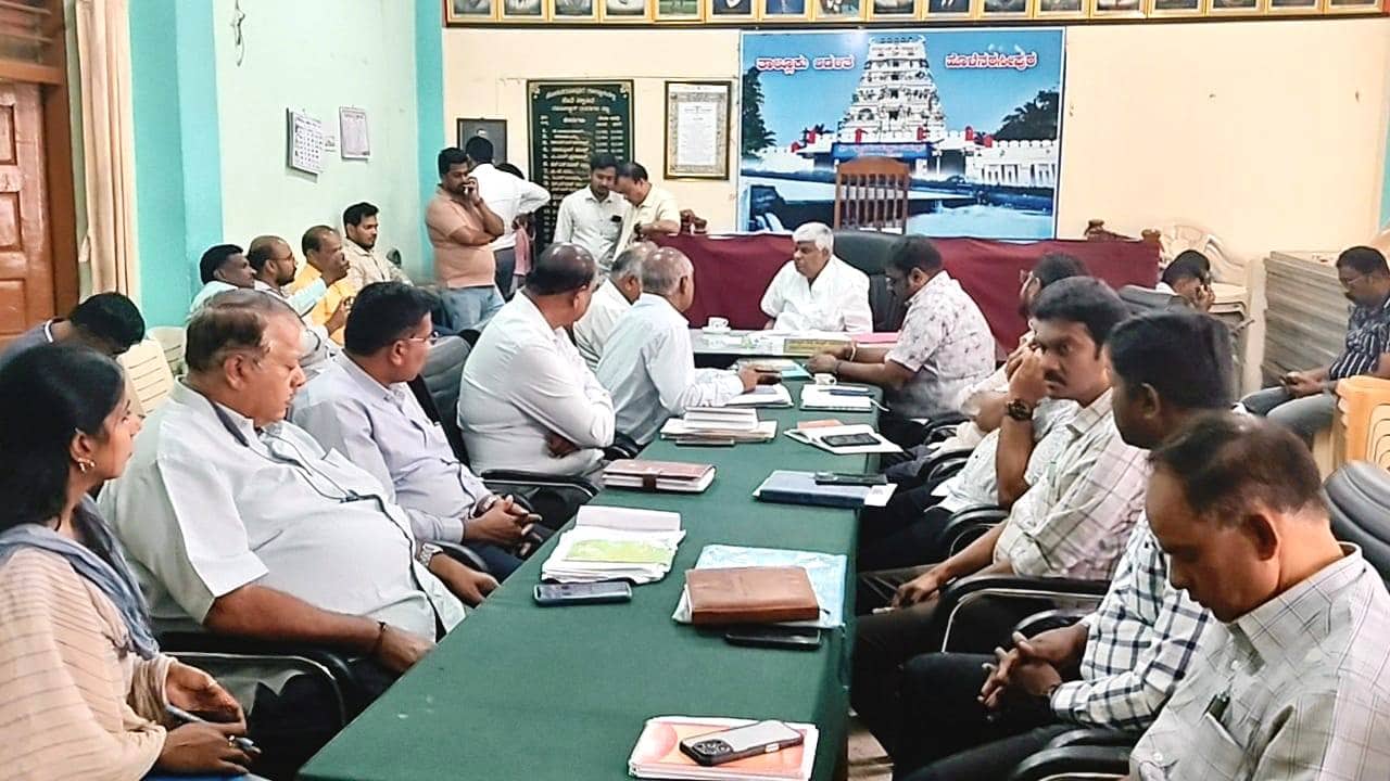 ಹೊಳೆನರಸೀಪುರದ ತಾಲೂಕು ಕಚೇರಿಯಲ್ಲಿ ಸಾಸಕ ಎಚ್.ಡಿ.ರೇವಣ್ಣ ಉಪಸ್ಥಿತಿಯಲ್ಲಿ ಅಧಿಕಾರಿಗಳ ಸಭೆ ನಡೆಯಿತು. ಸೋಮಲಿಂಗೇಗೌಡ, ಶಿವಶಂಕರ್, ತಿಪ್ಪೆಸ್ವಾಮಿ ಇದ್ದರು.
