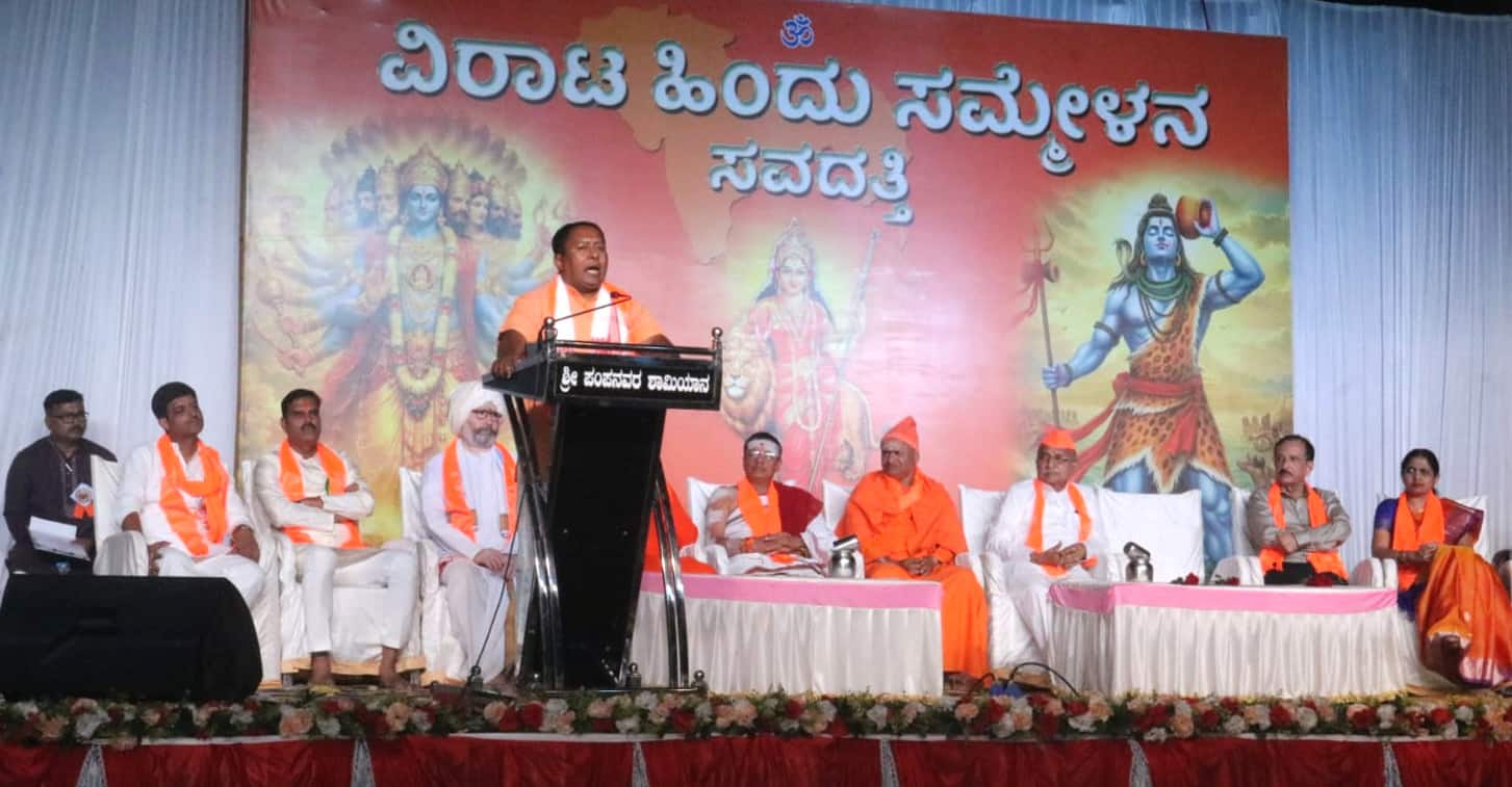 ಧರ್ಮಪ್ರಧಾನ ದೇಶ ನಮ್ಮದಾಗಿದ್ದು, ಭಾರತದ ಆತ್ಮ ಹಿಂದುತ್ವವಾಗಿರುವದರಿಂದ ಹಿಂದುತ್ವದ ಏಳ್ಗೆಗೆ ಪಕ್ಷಾತೀತ ಪ್ರಯತ್ನಗಳು ಅತ್ಯವಶ್ಯ ಎಂದು ದೇವಾಲಯ ಸಂವರ್ಧನ ಸಮಿತಿಯ ರಾಜ್ಯ ಸಂಯೋಜಕ ಮನೋಹರ ಮಠದ ಹೇಳಿದರು.ಪಟ್ಟಣದ ತಾಲೂಕು ಕ್ರೀಡಾಂಗಣದಲ್ಲಿ ವಿರಾಟ ಹಿಂದೂ ಸಮ್ಮೇಳನದ ಅಂಗವಾಗಿ ಹಮ್ಮಿಕೊಂಡ ಬೃಹತ್ ಸಮಾವೇಶದಲ್ಲಿ ಭಾಗವಹಿಸಿ ಅವರು ಮಾತನಾಡಿದರು. ದೇಶವ್ಯಾಪಿ ವಿರಾಟ ಹಿಂದೂ ಸಮ್ಮೇಳನಗಳು ಜರುಗುತ್ತಿದ್ದು, ಎಲ್ಲರ ಕಲ್ಯಾಣವನ್ನು ಬಯಸುವ ಹಿಂದುಗಳು ಇಂದು ಜಗತ್ತಿಗೆ ಮಾದರಿಯಾಗಿದ್ದಾರೆ ಎಂದರು.