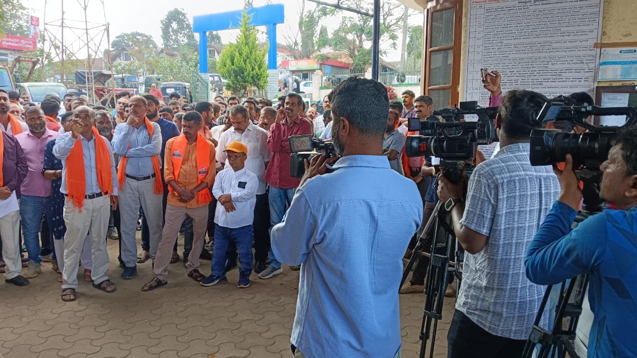 ಅಯೋಧ್ಯೆಯಲ್ಲಿ ಶ್ರೀರಾಮ ಪ್ರತಿಷ್ಠಾಪನೆಯ ಪ್ರಯುಕ್ತ ವಿರಾಜಪೇಟೆಯ ಎಲ್ಲ ದೇವಸ್ಥಾನಗಳಲ್ಲಿ ವಿಶೇಷ ಪೂಜೆ ಹಾಗೂ ಜ.30ರ ವರೆಗೆ ವಿರಾಜಪೇಟೆ ನಗರದಾದ್ಯಂತ ಬಂಟಿಂಗ್ಸ್ ಧ್ವಜ ಫ್ಲೆಕ್ಸ್ಗಳನ್ನು ಪುರಸಭೆಯ ಅನುಮತಿ ಮೇರೆಗೆ ನಗರವನ್ನು ಅಲಂಕಾರಗೊಳಿಸಲಾಗಿತ್ತು. ಜ.25ರಂದು ಮುಖ್ಯಮಂತ್ರಿ ವಿರಾಜಪೇಟೆಗೆ ಆಗಮಿಸುವ ಹಿನ್ನೆಲೆಯಲ್ಲಿ ಈಗಾಗಲೇ ನಗರದಾದ್ಯಂತ ಹಾಕಲಾಗಿದ್ದ ಬಂಟಿಂಗ್ಸ್ ಧ್ವಜ ಫ್ಲೆಕ್ಸ್ಗಳನ್ನು ಜ.23ರಂದು ಸಂಜೆ 5 ಗಂಟೆಯೊಳಗೆ ತೆರವುಗೊಳಿಸಬೇಕು, ಇಲ್ಲದಿದ್ದಲ್ಲಿ ಪುರಸಭೆಯ ವತಿಯಿಂದ ತೆರವುಗೊಳಿಸುವುದಾಗಿ ನೋಟಿಸ್ ಜಾರಿಗೊಳಿಸಲಾಗಿತ್ತು. ಇದನ್ನು ಖಂಡಿಸಿ ಹಿಂದೂ ಪರ ಸಂಘಟನೆಗಳು ಪ್ರತಿಭಟನೆ ನಡೆಸಿದರು. ಪ್ರತಿಭಟನೆಯಲ್ಲಿ ಮಾತನಾಡಿದ ಮಾಜಿ ಶಾಸಕ ಕೆ.ಜಿ. ಬೋಪಯ್ಯ, ಪುರಸಭೆ ಮುಖ್ಯಾಧಿಕಾರಿಗಳನ್ನು ತೀವ್ರವಾಗಿ ತರಟೆಗೆ ತೆಗೆದುಕೊಂಡರು. ಹಿಂದೂ ಸಂಘಟನೆಗಳ ಆಕ್ರೋಶದ ಪರಿಣಾಮವಾಗಿ ಅನುಮತಿ ಪಡೆದ ದಿನಾಂಕ 30.01.2024ರ ವರೆಗೂ ನಗರದಲ್ಲಿ ಅಲಂಕರಿಸಿದ ಯಾವುದೇ ಫ್ಲೆಕ್ಸ್, ಧ್ವಜ, ಬಂಟಿಂಗ್ಗಳನ್ನು ತೆರವುಗೊಳಿಸುವುದಿಲ್ಲ ಎಂದು ಪುರಸಭೆ ಮುಖ್ಯಾಧಿಕಾರಿಗಳು ನೋಟಿಸ್ ವಾಪಸ್ ಪಡೆದಿದ್ದಾರೆ. ಮಾಜಿ ಶಾಸಕ ಕೆ.ಜಿ. ಬೋಪಯ್ಯ, ದೇಶದ ಎಲ್ಲೆಡೆ ಪ್ರಭು ಶ್ರೀರಾಮರ ಮಂದಿರ ಮತ್ತು ಪ್ರಾಣ ಪ್ರತಿಷ್ಠಾಪನೆ ಸಂಭ್ರಮ ಮನೆಮಾಡಿದೆ. ಎಲ್ಲ ಮನೆ, ಮನೆಗಳು, ನಗರದ ಬೀದಿ, ದೇಗುಲಗಳಲ್ಲಿ ಮಂಗಳಕರ ವಾತಾವರಣ ನಿರ್ಮಾಣವಾಗಿದೆ. ನಗರವು ಕೇಸರಿ ತೋರಣಗಳು, ಪ್ರಭು ಶ್ರೀ ರಾಮರ ಭಾವಚಿತ್ರಗಳನ್ನು ಅಳವಡಿಸಿಕೊಂಡು ರಾರಾಜಿಸುತ್ತಿದೆ. ಆದರೆ ಮುಖ್ಯಮಂತ್ರಿಗಳ ಆಗಮನ ಹಿನ್ನೆಲೆಯಲ್ಲಿ ಅಳವಡಿಸಲಾಗಿರುವ ತೋರಣಗಳ್ನು ತೆರವು ಮಾಡುವ ಆದೇಶ ಬಂದಿರುವುದು ಹಿಂದೂಗಳ ಭಾವನೆಗಳನ್ನು ಕೆರಳಿಸಿದೆ. ಕಾಂಗ್ರೆಸ್ ಪಕ್ಷದ ನಾಯಕರ ಬೃಹತ್ ಕಟ್ ಔಟ್ ಅಳವಡಿಸಿದಲ್ಲಿ ಯಾವುದೇ ತೊಂದರೆ ಇಲ್ಲ. ಆದರೆ ರಾಮ ದೇವರ ಚಿತ್ರ ಮತ್ತು ಕೇಸರಿ ಕಂಡಲ್ಲಿ ತೆರವು ಮಾಡುವಂತೆ ಹೇಳುವುದು ರಾಜಕೀಯ ಕುತಂತ್ರವಾಗಿದೆ ಎಂದು ಆಕ್ರೋಶ ವ್ಯಕ್ತಪಡಿಸಿದರು. ಜಿಲ್ಲಾ ಪಂಚಾಯಿತಿ ಮಾಜಿ ಸದಸ್ಯ ಶಶಿ ಸುಬ್ರಮಣಿ, ವಿಶ್ವ ಹಿಂದೂ ಪರಿಷತ್ ತಾಲೂಕು ಅಧ್ಯಕ್ಷ ಬಿ.ಎಂ. ಕುಮಾರ್, ಬಜರಂಗ ದಳ ಜಿಲ್ಲಾ ಪ್ರಮುಖ್ ವಿವೇಕ್ ರೈ, ಬಿಜೆಪಿ ಪ್ರಮುಖರಾದ ವಾಟೇರಿರ ಬೋಪಣ್ಣ, ಟಿ.ಪಿ. ಕೃಷ್ಣ, ಹಿಂದೂ ಪರ ಸಂಘಟನೆಗಳ ಪ್ರಮುಖರು, ಸದಸ್ಯರು, ಕಾರ್ಯಕರ್ತರು ಹೆಚ್ಚಿನ ಸಂಖ್ಯೆಯಲ್ಲಿ ಪ್ರತಿಭಟನೆಯಲ್ಲಿ ಪಾಲ್ಗೊಂಡಿದ್ದರು.