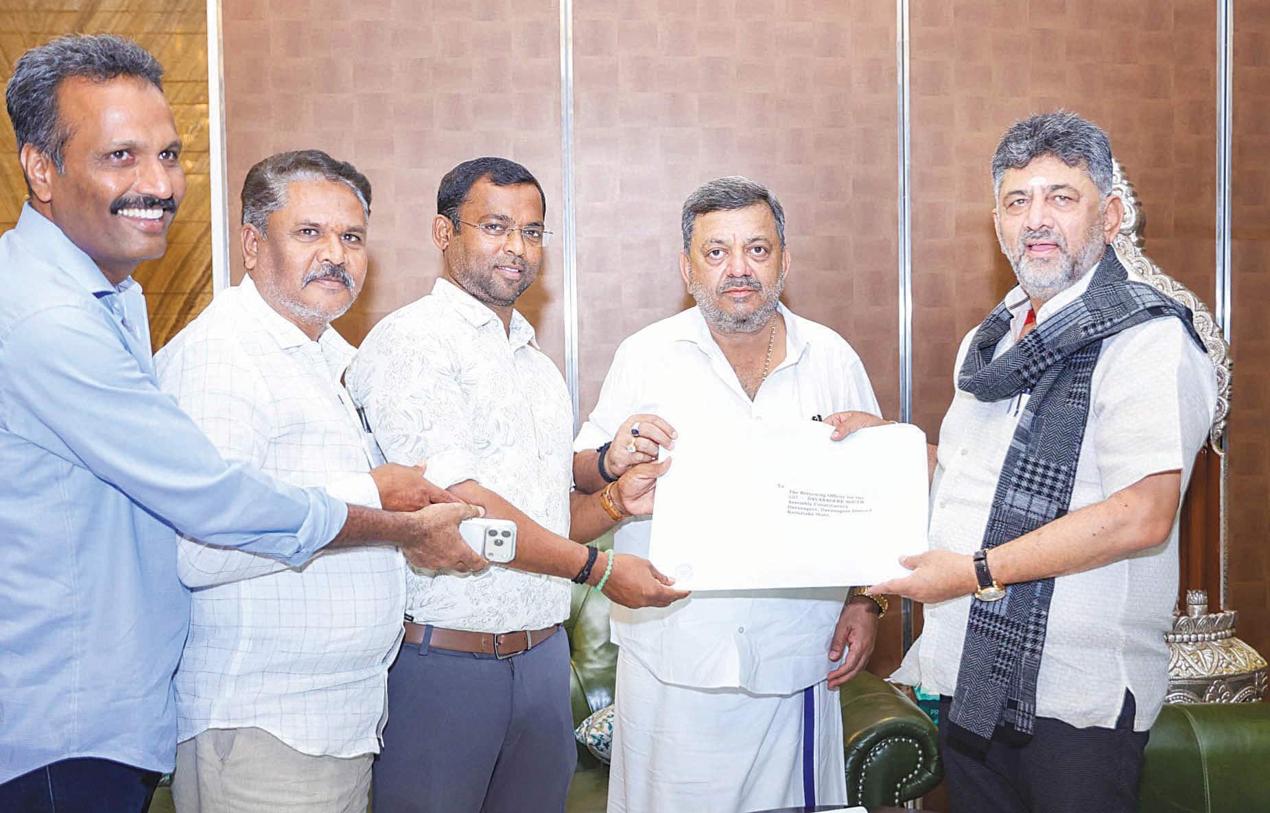 ಭಾನುವಾರ ಬೆಳಗ್ಗೆ ಸಮರ್ಥ್ ಪರವಾಗಿ ಸಚಿವ ಎಸ್.ಎಸ್.ಮಲ್ಲಿಕಾರ್ಜುನ್ ಅವರು ಡಿ.ಕೆ.ಶಿವಕುಮಾರ್ ನಿವಾಸಕ್ಕೆ ತೆರಳಿ ದಾವಣಗೆರೆ ದಕ್ಷಿಣ ಕ್ಷೇತ್ರದ ಕಾಂಗ್ರೆಸ್ ಬಿ-ಫಾರಂ ಸ್ವೀಕರಿಸಿದರು.ಇನ್ನು ಉಮೇಶ್ ಮೇಟಿ ಪರವಾಗಿ ಬಾಗಲಕೋಟೆ ಕ್ಷೇತ್ರದ ಕಾಂಗ್ರೆಸ್ ನಾಯಕ ಮಂಜುನಾಥ್ ಅವರು ಡಿ.ಕೆ.ಶಿವಕುಮಾರ್ ಅವರಿಂದ ಬಿ-ಫಾರಂ ಪಡೆದುಕೊಂಡರು.