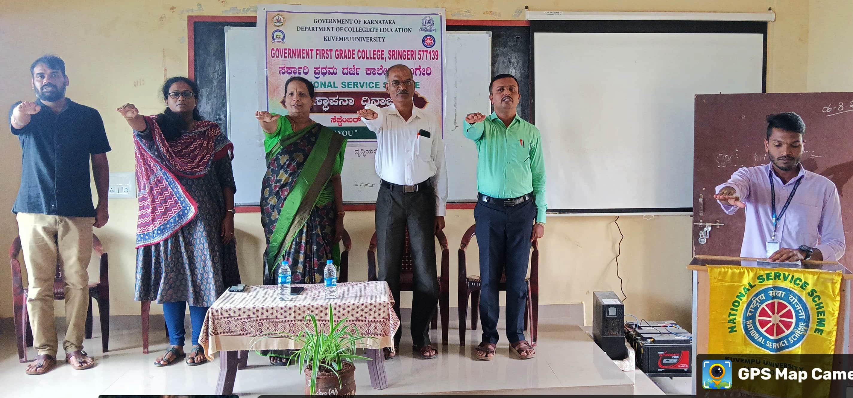 ಶೃಂಗೇರಿ ಮೆಣಸೆ ಸರ್ಕಾರಿ ಪ್ರಥಮ ದರ್ಜೆ ಕಾಲೇಜಿನಲ್ಲಿ ಎನ್ಎಸ್ಎಸ್ 56 ಸಂಸ್ಥಾಪನಾ ದಿನಾಚರಣೆ ಅಂಗವಾಗಿ ವಿದ್ಯಾರ್ಥಿಗಳಿಗೆ ಪ್ರತಿಜ್ಞಾವಿಧಿ ಬೋಧಿಸಲಾಯಿತು.