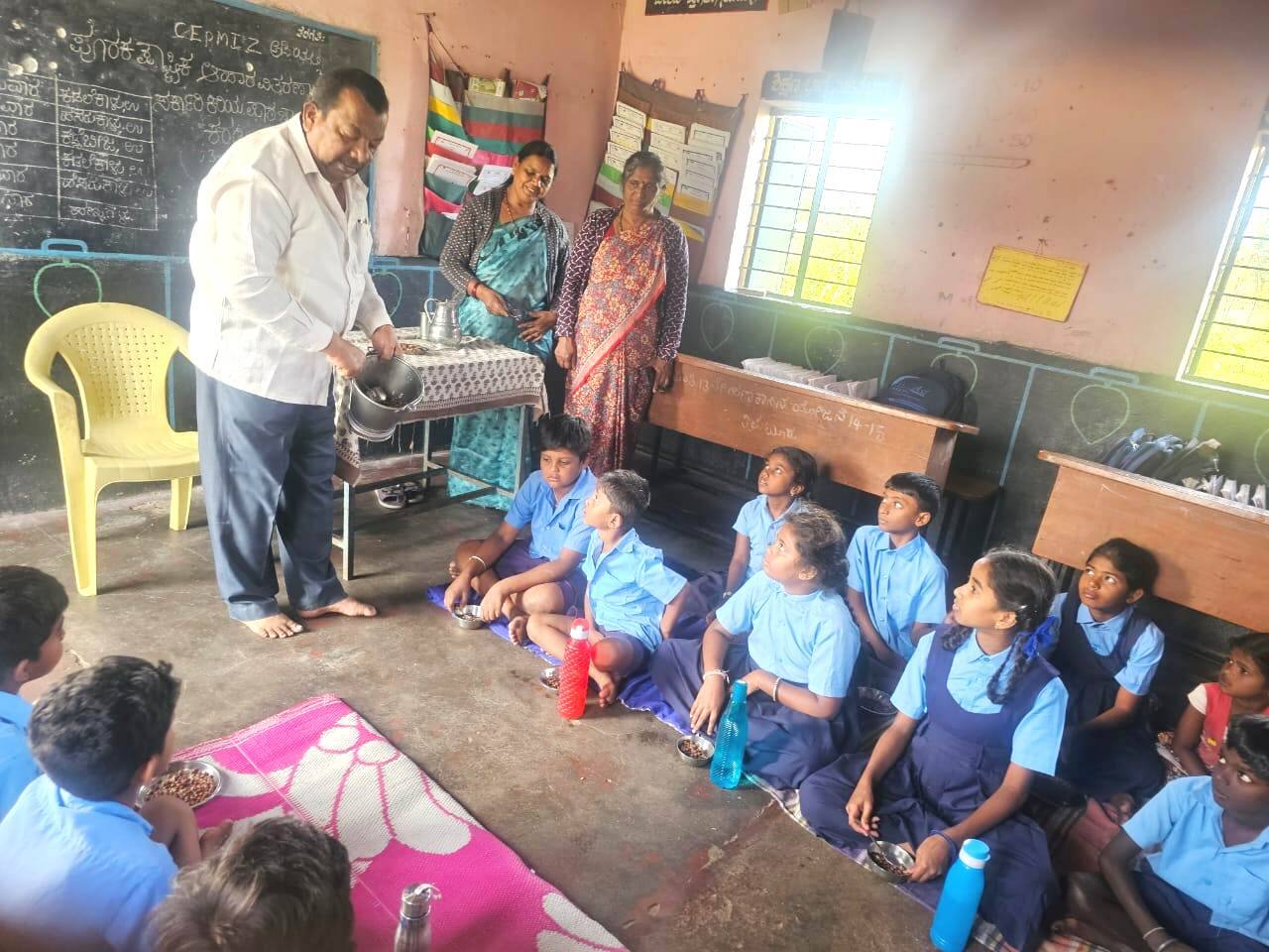 ಗಣಿಬಾಧಿತ ಪ್ರದೇಶವಾದ ಕರಡಿ ಸರ್ಕಾರಿ ಪ್ರಾಥಮಿಕ ಶಾಲೆಯಲ್ಲಿ ವಿದ್ಯಾರ್ಥಿಗಳಿಗೆ ಪೌಷ್ಟಿಕ ಆಹಾರ ವಿತರಣೆ