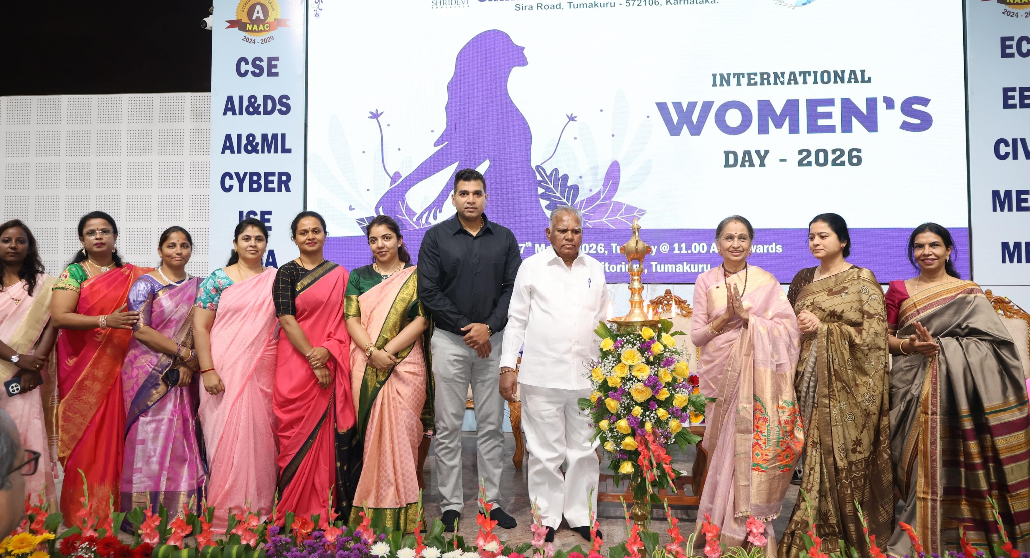 ಕಾರ್ಯಕ್ರಮದಲ್ಲಿ ಶ್ರೀದೇವಿ ವೈದ್ಯಕೀಯ ನಿರ್ದೇಶಕರಾದ ಡಾ.ರಮಣ್ ಆರ್ ಹುಲಿನಾಯ್ಕರ್ರವರು ಮಾತನಾಡಿ, ಇಂದು ಎಲ್ಲ ರಂಗದಲ್ಲಿ ಮಹಿಳೆಯರು ಮುಂದೆ ಬರುತ್ತಿದ್ದಾರೆ. ಇದಕ್ಕೆ ಪ್ರತಿಯೊಬ್ಬರ ಸಹಕಾರ ಪ್ರೋತ್ಸಾಹ ಅಗತ್ಯವಾಗಿದೆ ಎಂದು ಹೇಳಿದರು. ಇದೇ ಸಂದರ್ಭದಲ್ಲಿ ಬೆಂಗಳೂರಿನ ಹೆಸರಾಂತ ಹಿರಿಯ ಮಕ್ಕಳ ಹೃದ್ರೋಗ ತಜ್ಞ ಡಾ.ವಿಜಯಲಕ್ಷ್ಮಿ ಬಾಳೇಕುಂದ್ರಿ, ತುಮಕೂರಿನ ಜಿಲ್ಲಾಧಿಕಾರಿ ಕಚೇರಿಯ ಸಹಾಯಕ ಆಯುಕ್ತೆ (ಕಂದಾಯ ಇಲಾಖೆಯ) ಸುಪ್ರಿಯಾ ಬನಗರ್ರವರಿಗೆ ಸನ್ಮಾನಿಸಿ ಗೌರವಿಸಲಾಗಿತ್ತು.ಸಮಾರಂಭದಲ್ಲಿ ಶ್ರೀದೇವಿ ಶಿಕ್ಷಣ ಸಂಸ್ಥೆಯ ಅಧ್ಯಕ್ಷರಾದ ಡಾ.ಎಂ.ಆರ್.ಹುಲಿನಾಯ್ಕರ್, ರೂಪಾನಟೇಶ್, ಡಾ.ರೇಖಾಗುರುಮೂರ್ತಿ, ಪ್ರಸನ್ನಕುಮಾರ್.ವೈ.ಆರ್. ಹಾಗೂ ವಿವಿಧ ಕಾಲೇಜಿನ ಪ್ರಾಂಶುಪಾಲರು, ಮುಖ್ಯಸ್ಥರು, ಬೋಧಕ-ಬೋಧಕೇತರ ಸಿಬ್ದಂದಿ , ವಿದ್ಯಾರ್ಥಿ-ವಿದ್ಯಾರ್ಥಿನಿಯರು ಕಾರ್ಯಕ್ರಮದಲ್ಲಿ ಉಪಸ್ಥಿತರಿದ್ದರು.
