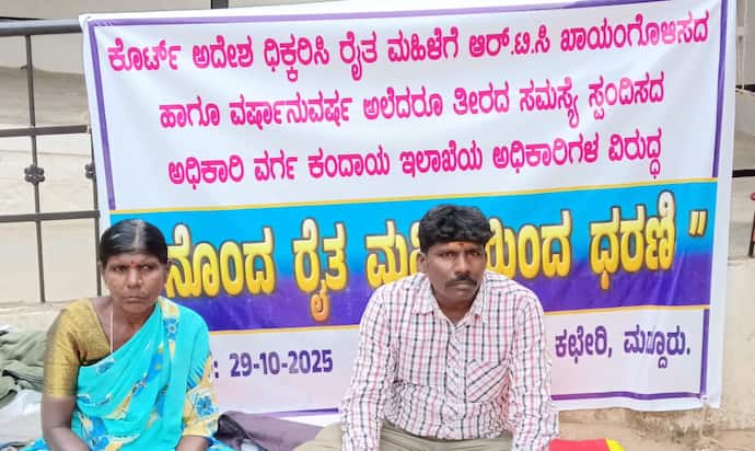 ನ್ಯಾಯಾಲಯದ ಆದೇಶವಿದ್ದರೂ ತಮ್ಮ ಜಮೀನಿನಲ್ಲಿ ಉಳುಮೆ ಮಾಡಲು ಪ್ರಭಾವಿ ವ್ಯಕ್ತಿಗಳು ಅಡ್ಡಿ ಪಡಿಸುತ್ತಿದ್ದಾರೆ. ಕಂದಾಯ ಇಲಾಖೆ ಅಧಿಕಾರಿಗಳು ರಕ್ಷಣೆ ನೀಡುತ್ತಿಲ್ಲ ಎಂದು ಆರೋಪಿಸಿ ದಲಿತ ವಿಧವೆ ಮಹಿಳೆ ತನ್ನ ಪುತ್ರನೊಂದಿಗೆ ಪಟ್ಟಣದ ತಾಲೂಕು ಕಚೇರಿ ಎದುರು ಬುಧವಾರದಿಂದ ಅನಿರ್ದಿಷ್ಟಾವಧಿ ಧರಣಿ ಆರಂಭಿಸಿದರು.ತಾಲೂಕಿನ ಆತಗೂರು ಹೋಬಳಿ ದುಂಡನಹಳ್ಳಿ ವ್ಯಾಪ್ತಿಯ ಸರ್ವೇ ನಂ.442ರಲ್ಲಿ ಇರುವ 4.35 ಉಳುಮೆ ಮಾಡಲು ಮದ್ದೂರು ಜೆಎಂಎಫ್ಸಿ ನ್ಯಾಯಾಲಯ, ಜಿಲ್ಲಾಧಿಕಾರಿ ಹಾಗೂ ಉಪವಿಭಾಗಧಿಕಾರಿ ನ್ಯಾಯಾಲಯಗಳಲ್ಲಿ ಜಮೀನಿನ ಬಗ್ಗೆ ವಿಚಾರಣೆ ನಡೆದು ಅಂತಿಮವಾಗಿ ನಮ್ಮ ಪರವಾಗಿ ತೀರ್ಪು ನೀಡಿವೆ.