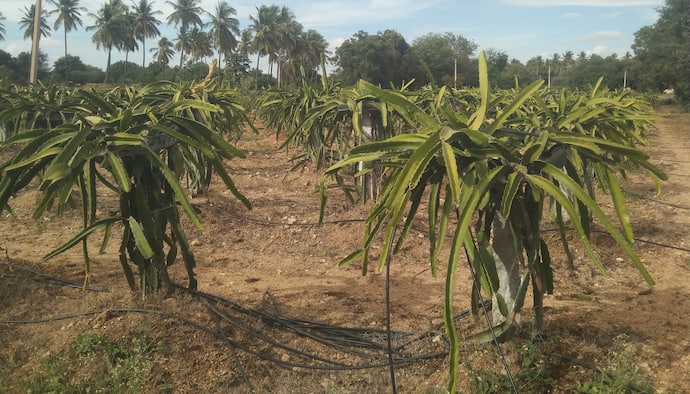 ಕಡಿಮೆ ತೇವಾಂಶ ಇರುವ ಒಣ ಭೂಮಿ ಈ ಬೆಳೆಗೆ ಸೂಕ್ತವಾಗಿದ್ದು ಪ್ರತಿ ಗಿಡಕ್ಕೆ ಕಲ್ಲುಕಂಬ ನೆಟ್ಟು, ಮೇಲ್ಭಾಗದಲ್ಲಿ ಟೈರ್ ಅಳವಡಿಸಲಾಗಿದೆ. ಗದಗ ಜಿಲ್ಲೆಯ ಮುಂಡರಗಿಯಿಂದ ಸಸಿಗಳನ್ನು ತರಿಸಿ 4 ಸಾವಿರ ಗಿಡಗಳನ್ನು ನೆಟ್ಟಿದ್ದು ಸಂಪೂರ್ಣವಾಗಿ ಹನಿ ನೀರಾವರಿ ಪದ್ಧತಿ ಅಳವಡಿಸಿಕೊಳ್ಳಲಾಗಿದೆ. ಅಲ್ಪ ನೀರಿನ ತೇವಾಂಶದಲ್ಲಿ ಉತ್ತಮ ಬೆಳೆ ಬೆಳೆದು ವಾರ್ಷಿಕ 5 ಲಕ್ಷ ರು. ಗಳಿಸುತ್ತಿದ್ದು ಡ್ರ್ಯಾಗನ್ ಆರ್ಥಿಕವಾಗಿ ಕೈ ಹಿಡಿದಿದೆ.ಇಂದಿನ ಜನಪ್ರಿಯ ಹಣ್ಣುಗಳಲ್ಲಿ ಡ್ರ್ಯಾಗನ್ ಫ್ರೂಟ್ (ಹಣ್ಣು) ಒಂದಾಗಿದೆ. ಕಳ್ಳಿ ಜಾತಿಗೆ ಸೇರಿದ ಈ ಬೆಳೆ ಉಷ್ಣ ಪ್ರದೇಶಕ್ಕೆ ಸೂಕ್ತ ಸ್ಥಳವಾಗಿದೆ. ವಿಶಿಷ್ಟ ಆಕಾರ ಮತ್ತು ಸಮೃದ್ಧ ಪೌಷ್ಟಿಕಾಂಶ, ರೋಮಾಂಚಕ ಬಣ್ಣಗಳಿಂದಾಗಿ ವಿಶ್ವಾದ್ಯಂತ ಜನಪ್ರಿಯತೆಯನ್ನು ಗಳಿಸಿರುವ ಈ ಹಣ್ಣಿನ ಬೆಳೆ ಬಿಸಿಲ ನಾಡಿಗೆ ಮೆಲ್ಲನೆ ಕಾಲಿರಿಸಿದ್ದು. ತಾಲೂಕಿನಲ್ಲಿ ಈಗಾಗಲೇ ಹತ್ತು ಎಕರೆ ವಿಸ್ತೀರ್ಣದಲ್ಲಿ ಡ್ರ್ಯಾಗನ್ ಬೆಳೆ ಕಾಣಸಿಗುತ್ತಿದೆ.