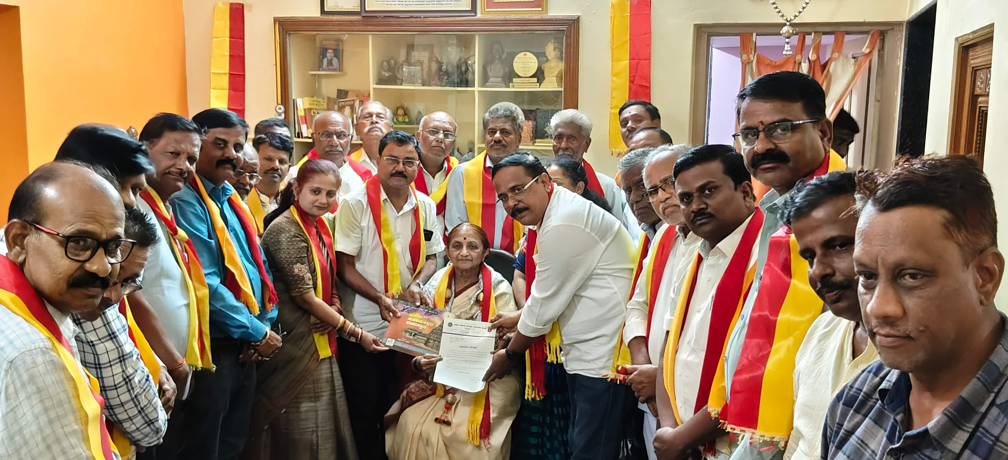 ಲಕ್ಷ್ಮೇಶ್ವರ: ತಾಲೂಕು 2ನೇ ಕನ್ನಡ ಸಾಹಿತ್ಯ ಸಮ್ಮೇಳನದ ಅಧ್ಯಕ್ಷರಾಗಿ ಆಯ್ಕೆಯಾಗಿರುವ ಲಲಿತಾ ಕೆರಿಮನಿ ಅವರಿಗೆ ತಾಲೂಕು ಕಸಾಪ ಅಧಿಕೃತ ಆಹ್ವಾನ ನೀಡಿ ಗೌರವಿಸಿದರು.