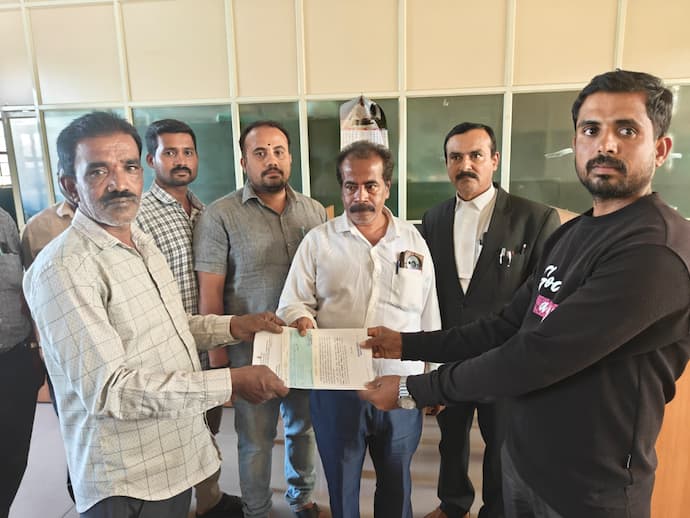 31ಕೆಆರ್ ಎಂಎನ್ 8.ಜೆಪಿಜಿಭೂ ಸ್ವಾಧೀನ ಕಚೇರಿಯಲ್ಲಿ ಜಪ್ತಿ ಕಾರ್ಯಕ್ಕೆ ಆಗಮಿಸಿದ್ದ ವೇಳೆ ಅಧಿಕಾರಿಗಳು ಚೆಕ್ ಮುಖಾಂತರ ಪರಿಹಾರದ ಹಣ ಸಂದಾಯ ಮಾಡಿದರು.