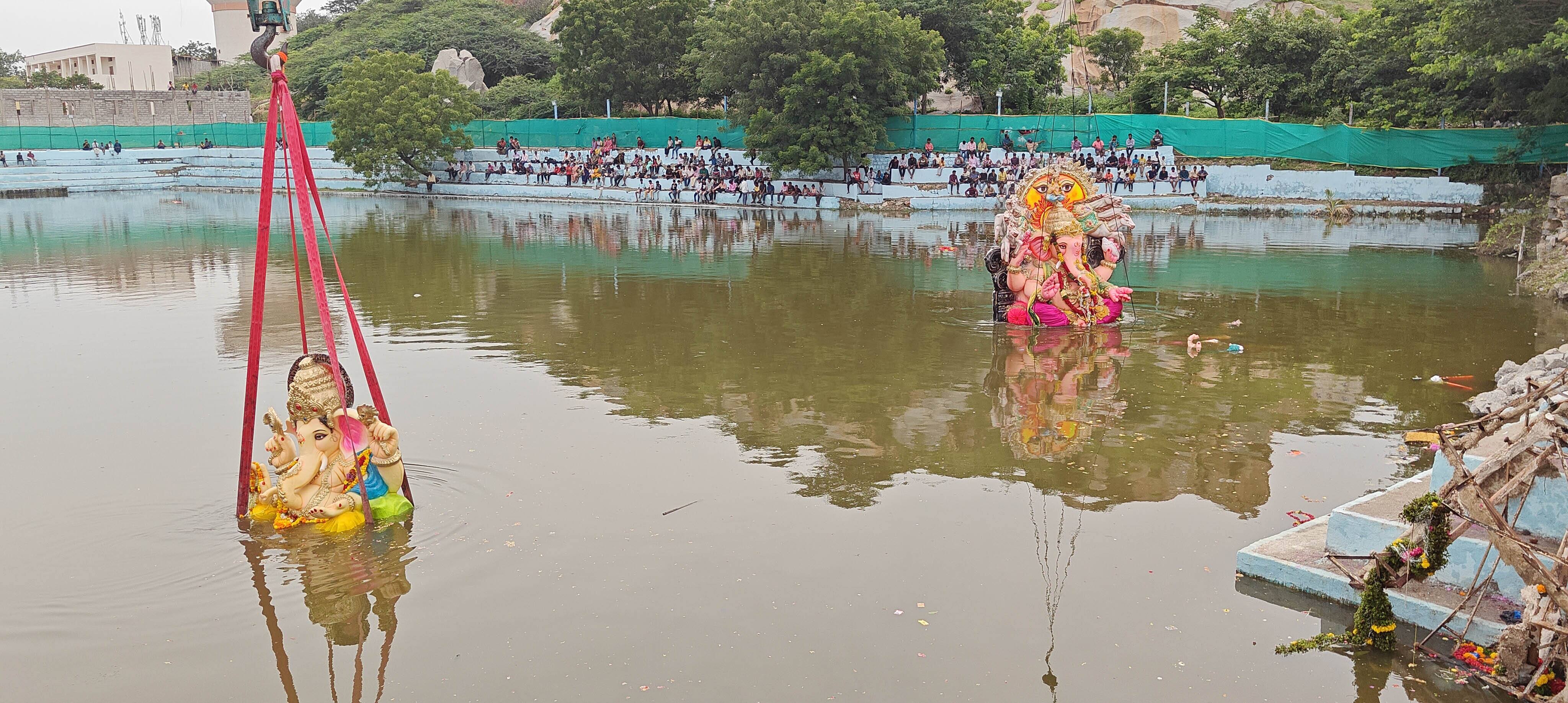 ಜಿಲ್ಲಾ ಕೇಂದ್ರವಾದ ರಾಯಚೂರು ನಗರ ಸೇರಿದಂತೆ ವಿವಿಧ ತಾಲೂಕುಗಳಲ್ಲಿ ಅದ್ದೂರಿಯಾಗಿ ನಡೆಯುತ್ತಿರುವ ಗಣೇಶೋತ್ಸವದಲ್ಲಿ 5 ನೇ ದಿನ 150 ಕ್ಕೂ ಹೆಚ್ಚು ಗಣೇಶ ಮೂರ್ತಿಗಳನ್ನು ನಿಮಜ್ಜನಗೊಳಿಸಲಾಯಿತು.