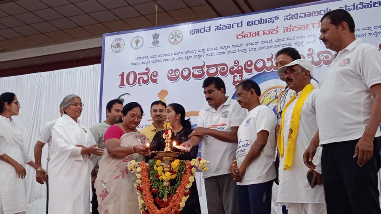 ಯೋಗ ಆಯುರ್ವೇದದ ಅವಿಭಾಗ್ಯ ಅಂಗ. ಇಡೀ ಪ್ರಪಂಚಕ್ಕೆ ಪರಿಚಯಿಸಿದ ಕೀರ್ತಿ ಭಾರತಕ್ಕೆ ಸಲ್ಲುತ್ತದೆ. ತನಗಾಗಿ ಮತ್ತು ಸಮಾಜಕ್ಕಾಗಿ ಯೋಗ ಎಂಬುದು 10ನೇ ಅಂತಾರಾಷ್ಟ್ರೀಯ ಯೋಗ ದಿನಾಚರಣೆ ಘೋಷ ವಾಕ್ಯವಾಗಿದ್ದು, ಮಹಿಳಾ ಸಬಲೀಕರಣಕ್ಕಾಗಿ ಯೋಗ ಎಂಬ ಧ್ಯೇಯದೊಂದಿಗೆ ಆಚರಿಸಲಾಗುತ್ತಿದೆ ಎಂದರು.ಜಿಲ್ಲಾಧಿಕಾರಿ ಮೀನಾ ನಾಗರಾಜ್ ಮಾತನಾಡಿ, ದೈಹಿಕ ಆರೋಗ್ಯವನ್ನು ಮೀರಿ ಯೋಗ ಮಾನಸಿಕ ಯೋಗ ಕ್ಷೇಮಕ್ಕೆ ಗಮನಾರ್ಹವಾಗಿ ಪ್ರಯೋಜನ ನೀಡುತ್ತದೆ. ಇದು ಒತ್ತಡ ಕಡಿಮೆ ಮಾಡಲು ಸಹಾಯ ಮಾಡುತ್ತದೆ. ಏಕಾಗ್ರತೆ ಹೆಚ್ಚಿಸುತ್ತದೆ ಮತ್ತು ಮಾನಸಿಕವಾಗಿ ಸ್ಪಷ್ಟತೆ ಉತ್ತೇಜಿಸುತ್ತದೆ. ಆತಂಕ ಮತ್ತು ಖಿನ್ನತೆ ಹೋಗಲಾಡಿಸಲು ನಿರ್ಣಾಯಕ ವಾಗಿದ್ದು ಪ್ರತಿನಿತ್ಯ ಯೋಗ ಮಾಡಬೇಕೆಂದು ಹೇಳಿದರು.ಜಿಪಂ ಮುಖ್ಯ ಕಾರ್ಯನಿರ್ವಹಣಾಧಿಕಾರಿ ಡಾ. ಗೋಪಾಲಕೃಷ್ಣ ಮಾತನಾಡಿ, ಜಗತ್ತಿಗೆ ಯೋಗ ಪರಿಚಯಿಸಿದ ಕೀರ್ತಿ ಭಾರತಕ್ಕೆ ಸಲ್ಲುತ್ತದೆ. ವಿಶ್ವಸಂಸ್ಥೆ 2014 ರಲ್ಲಿ ಸರ್ವಾನುಮತದಿಂದ ಜೂನ್ 21 ನ್ನು ಯೋಗ ದಿನಾಚರಣೆಯಾಗಿ ಘೋಷಣೆ ಮಾಡಿದೆ. ಇಂದು ವಿಶ್ವದ 187 ದೇಶಗಳಲ್ಲಿ ಯೋಗ ದಿನ ಆಚರಿಸಲಾಗುತ್ತದೆ. ಯೋಗ ನಿಯಮಿತವಾಗಿ ಮಾಡುವುದರಿಂದ ರಕ್ತ ಚಲನೆ, ಜೀರ್ಣಕ್ರಿಯೆ ಸರಾಗವಾಗಿ ದೈಹಿಕ ಸ್ಥಿತಿಗತಿ ಉತ್ತಮವಾಗುತ್ತದೆ. ಅಲ್ಲದೆ ಒತ್ತಡದ ಜೀವನ ಶೈಲಿಯಿಂದ ಪಾರಾಗಿ ಮಾನಸಿಕ ನೆಮ್ಮದಿ ಪಡೆಯಲು ಯೋಗ ಸಹಕಾರಿ ಎಂದು ತಿಳಿಸಿದರು. ಆಯುಷ್ ಇಲಾಖೆ ಅಧಿಕಾರಿ ಡಾ. ಹೇಮಾ ಮಾತನಾಡಿ, ಪ್ರತಿನಿತ್ಯ ಯೋಗ ಮಾಡುವುದರಿಂದ ಮಧುಮೇಹ, ರಕ್ತ ದೊತ್ತಡ, ಹೃದಯ ಸಂಬಂಧಿ ಖಾಯಿಲೆ ಹಾಗೂ ಮಾನಸಿಕ ಒತ್ತಡದ ನಿವಾರಣೆಗೆ ಯೋಗ ಉಪಯುಕ್ತ. ಅಲ್ಲದೆ ಬದಲಾದ ಜೀವನ ಶೈಲಿಯನ್ನು ಹತೋಟಿಗೆ ತರಲು ಯೋಗ ಪ್ರಮುಖ ಪಾತ್ರ ನಿರ್ವಹಿಸುತ್ತದೆ ಎಂದರು.ಕಾರ್ಯಕ್ರಮದಲ್ಲಿ ನಗರ ಸಭೆ ಅಧ್ಯಕ್ಷ ವರಸಿದ್ದಿ ವೇಣುಗೋಪಾಲ್, ಜಿಲ್ಲಾ ಪೊಲೀಸ್ ವರಿಷ್ಠಾಧಿಕಾರಿ ಡಾ. ವಿಕ್ರಮ್ ಅಮ್ಟೆ, ಜಿಲ್ಲಾ ಆರೋಗ್ಯ ಮತ್ತು ಕುಟುಂಬ ಕಲ್ಯಾಣ ಅಧಿಕಾರಿ ಡಾ. ಅಶ್ವಥ್ ಬಾಬು, ಆಯುಷ್ ಅಧಿಕಾರಿ ಡಾ. ಗೀತಾ ಸೇರಿದಂತೆ ವಿವಿಧ ಇಲಾಖೆ ಅಧಿಕಾರಿಗಳು ಭಾಗವಹಿಸಿದ್ದರು.--- ಬಾಕ್ಸ್ --ಶಕ್ತರಾದ ಪ್ರಜೆಗಳಿಂದ ನಾಡು ಸಮರ್ಥದೈಹಿಕ ಮತ್ತು ಮಾನಸಿಕವಾಗಿ ಶಕ್ತರಾದ ಪ್ರಜೆಗಳಿಂದ ನಾಡು ಸಮರ್ಥ ಹಾಗೂ ಸಾಮರಸ್ಯ ಹೊಂದಿರಲು ಸಾಧ್ಯ ಎಂದು ಮಾಡೆಲ್ ಶಾಲಾ ಸಂಸ್ಥಾಪಕ, ಭಾರತ್ ಸೌಟ್ಸ್ ಮತ್ತು ಗೈಡ್ಸ್ ಜಿಲ್ಲಾ ಮುಖ್ಯ ಆಯುಕ್ತ. ಎಂ.ಎನ್. ಷಡಕ್ಷರಿ ಹೇಳಿದರು.ನಗರದ ಉಪ್ಪಳ್ಳಿ ಮಾಡೆಲ್ ಶಾಲೆಯಲ್ಲಿ ಶುಕ್ರವಾರ ಆಯೋಜಿಸಲಾಗಿದ್ದ ವಿಶ್ವ ಯೋಗ ದಿನದಲ್ಲಿ ಘಂಟಾನಾದದೊಂದಿಗೆ ಕಾರ್ಯಕ್ರಮ ಉದ್ಘಾಟಿಸಿದರು.