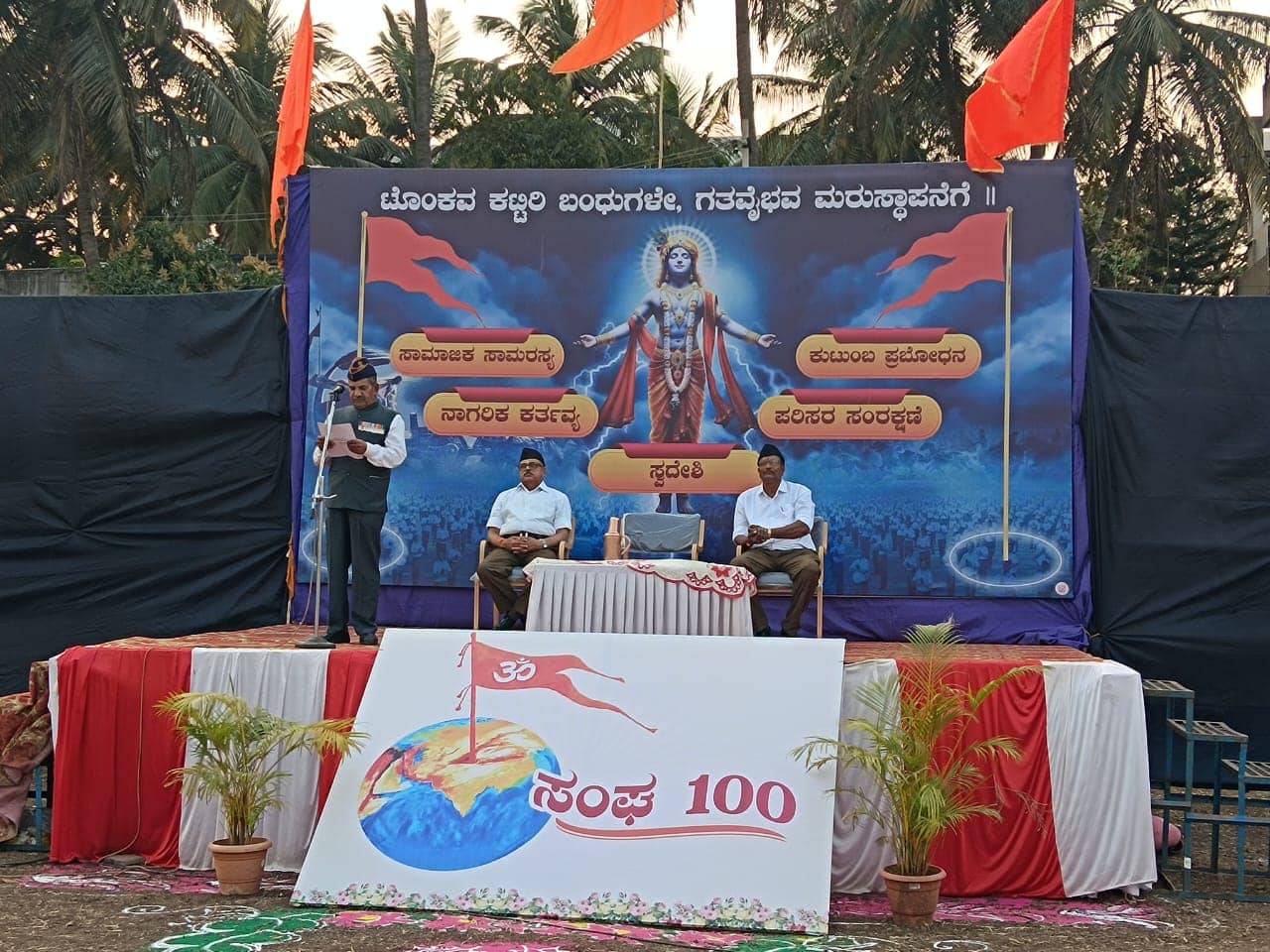 ಒಂದು ದೇಶ ಒಂದು ಕಾನೂನು ಬೇಕು, ಜನಸಂಖ್ಯೆ ನಿಯಂತ್ರಣ ಕಾಯ್ದೆ ಎಲ್ಲಾ ಧರ್ಮದವರಿಗೂ ಅನ್ವಯವಾಗಬೇಕು ಎಂದು ನಿವೃತ್ತ ವಾಯುಸೇನಾ ಕ್ಯಾಪ್ಟನ್ ವಿಲಾಸ ಜಂಗಲಿ ಹೇಳಿದರು.ಪಟ್ಟಣದ ಕಿವಡ ಮೈದಾನದಲ್ಲಿ ರಾಷ್ಟ್ರೀಯ ಸ್ವಯಂ ಸೇವಕ ಸಂಘ ಭಾನುವಾರ ಹಮ್ಮಿಕೊಂಡಿದ್ದ ತಾಲೂಕು ವಿರಾಟ್ ಸಮಾವೇಶದಲ್ಲಿ ಮಾತನಾಡಿದರು. ಹಿಂದೂ ರಾಷ್ಟ್ರನಿರ್ಮಾಣಕ್ಕಾಗಿ ನಾವೆಲ್ಲಾ ಒಂದಾಗಬೇಕಾಗಿದೆ. ಚಿಕ್ಕೋಡಿಗೆ ತನ್ನದೆಯಾದ ಐತಿಹಾಸಿಕ ಹಿನ್ನಲೆ ಇದೆ ಎಂದರು.ರಾಷ್ಟ್ರೀಯ ಸ್ವಯಂ ಸೇವಕ ಸಂಘದ ಪ್ರಮುಖ ಮಂಗೇಶ ಭೇಂಡೆ ಮಾತನಾಡಿ, ಚಿಕ್ಕೋಡಿ ಆರ್ಎಸ್ಎಸ್ ಹೆಬ್ಬಾಗಿಲಾಗಿದೆ. ಸಂಘದ ಕುರಿತು ಅಂತಾರಾಷ್ಟ್ರೀಯ ಮಟ್ಟದಲ್ಲಿ ಚರ್ಚೆಗಳು ನಡೆಯುತ್ತಿವೆ. ಇಸ್ರೇಲ್ ದೇಶದವರು ನಮ್ಮ ನಾಗಪುರ ಸಂಘದ ಕಚೇರಿಗೆ ಭೇಟಿ ನೀಡುತ್ತಿದ್ದು, ನಮ್ಮ ಸಂಘ ಅಂತಾರಾಷ್ಟ್ರೀಯ ಮಟ್ಟದಲ್ಲಿ ಒಂದು ಶಕ್ತಿಯಾಗಿ ಬೆಳೆದಿದೆ, ನಮ್ಮ ದೇಶದಲ್ಲಿ ಎರಡು ತರಹ ದೇಶಭಕ್ತರಿದ್ದಾರೆ. ತಾಯಿ ಹಾಲು ಕುಡಿದು ದೇಶ ಭಕ್ತಿ ಬೆಳೆಸಿಕೊಂಡಿದ್ದಾರೆ. ಈ ದೇಶದ ಮೂಲ ಪುರುಷರನ್ನು ಸಮಾಜ ಮರೆತು ಬಿಟ್ಟಿತ್ತು. ಡಾ.ಕೇಶವ ಹೆಗಡೇವಾರ ಅವರು ದೇಶದಲ್ಲಿ ಜನರಿಗೆ ತಿಳಿಸುವ ಕಾರ್ಯವನ್ನು ಅಂದು ಪ್ರಾರಂಭ ಮಾಡಿದರು. ಈ ದೇಶದ ಗುಲಾಮರಾಗಲು ನಮ್ಮ ಸಮಾಜದ ಕೆಲವು ಜನರೇ ಕಾರಣವಾಗಿದ್ದಾರೆ ಎಂದರು.ನಾಗರಿಕರು ದೇಶಕ್ಕಾಗಿ ಕರ್ತವ್ಯದಿಂದ ನಡೆದುಕೊಳ್ಳಬೇಕು. ಪಾಶ್ಚಿಮಾತ್ಯ ರಾಷ್ಟ್ರಗಳು ನಮ್ಮ ದೇಶದ ಸಂಸ್ಕೃತಿಯತ್ತ ಮುಖ ಮಾಡುತ್ತಿವೆ. ನಮ್ಮ ಮಕ್ಕಳಿಗೆ ದೇಶದ ಹಿಂದೂ ಸಂಸ್ಕೃತಿಯನ್ನು ತಿಳಿಸಿಕೊಡುವಂತೆ ಕರೆ ನೀಡಿದರು.ಕಾರ್ಯಕ್ರಮದಲ್ಲಿ ಬಿಡಿಸಿಸಿ ಅಧ್ಯಕ್ಷ ಅಣ್ಣಾಸಾಹೇಬ ಜೊಲ್ಲೆ, ರಾಯಬಾಗ ಶಾಸಕ ದುರ್ಯೋದನ ಐಹೊಳೆ, ವಿಧಾನ ಪರಿಷತ್ ಮಾಜಿ ಸದಸ್ಯ ಮಹಾಂತೇಶ ಕವಟಗಿಮಠ, ಭರತ ಬನವಣೆ, ಜಗದೀಶ ಕವಟಗಿಮಠ, ಸಂಜಯ ಅಡಕೆ, ಜಿಪಂ ಮಾಜಿ ಸದಸ್ಯ ಪ್ರಣಯ ಪಾಟೀಲ, ಪೃಥ್ವಿ ಕತ್ತಿ, ಚಿಕ್ಕೋಡಿ ಜಿಲ್ಲಾ ಸಂಘಚಾಲಕ ಬಾಹುಬಲಿ ನಸಲಾಪುರೆ, ಚಿಕ್ಕೋಡಿ ಜಿಲ್ಲಾ ಬಿಜೆಪಿ ಅಧ್ಯಕ್ಷ ಸತೀಶ ಅಪ್ಪಾಜಿಗೋಳ, ಮಹೇಶ ಭಾತೆ, ಬಿ.ಎ.ಪೂಜಾರಿ ಹಾಗೂ ಸಂಘದ ಪ್ರಮುಖರು ಭಾಗವಹಿಸಿದ್ದರು.ಮೊದಲು ರಾಷ್ಟ್ರೀಯ ಸ್ವಯಂ ಸೇವಕರು ಪಟ್ಟಣದ ಪ್ರಮುಖ ಬೀದಿಗಳಲ್ಲಿ ಪಥಸಂಚಲನ ನಡೆಸಿದರು. ಗಣವೇಷಧಾರಿಗಳಾಗಿ ಬಿಡಿಸಿಸಿ ಅಧ್ಯಕ್ಷ ಅಣ್ಣಾಸಾಹೇಬ ಜೊಲ್ಲೆ, ಶಾಸಕ ದುರ್ಯೋದನ ಐಹೊಳೆ, ಜಗದೀಶ ಕವಟಗಿಮಠ, ಚಿಕ್ಕೋಡಿ ಜಿಲ್ಲಾ ಬಿಜೆಪಿ ಅಧ್ಯಕ್ಷ ಸತೀಶ ಅಪ್ಪಾಜಿಗೋಳ ಮುಂತಾದವರು ಭಾಗವಹಿಸಿದ್ದರು.