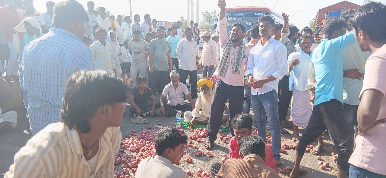 ಈರುಳ್ಳಿ ದರ ಕುಸಿತಕ್ಕೆ ಬೇಸತ್ತ ರೈತರು ಗುರುವಾರ ಪಟ್ಟಣದ ಕೃಷಿ ಉತ್ಪನ್ನ ಮಾರುಕಟ್ಟೆಯಲ್ಲಿ ಪ್ರತಿಭಟನೆ ನಡೆಸಿದರು. ಮಾರುಕಟ್ಟೆ ಮುಂಭಾಗದ ಮನಗೂಳಿ-ಬಿಜ್ಜಳ ರಾಜ್ಯ ಹೆದ್ದಾರಿ ಮೇಲೆ ಈರುಳ್ಳಿ ಸುರಿದು ರಸ್ತೆ ತಡೆ ಮಾಡಿದರು.