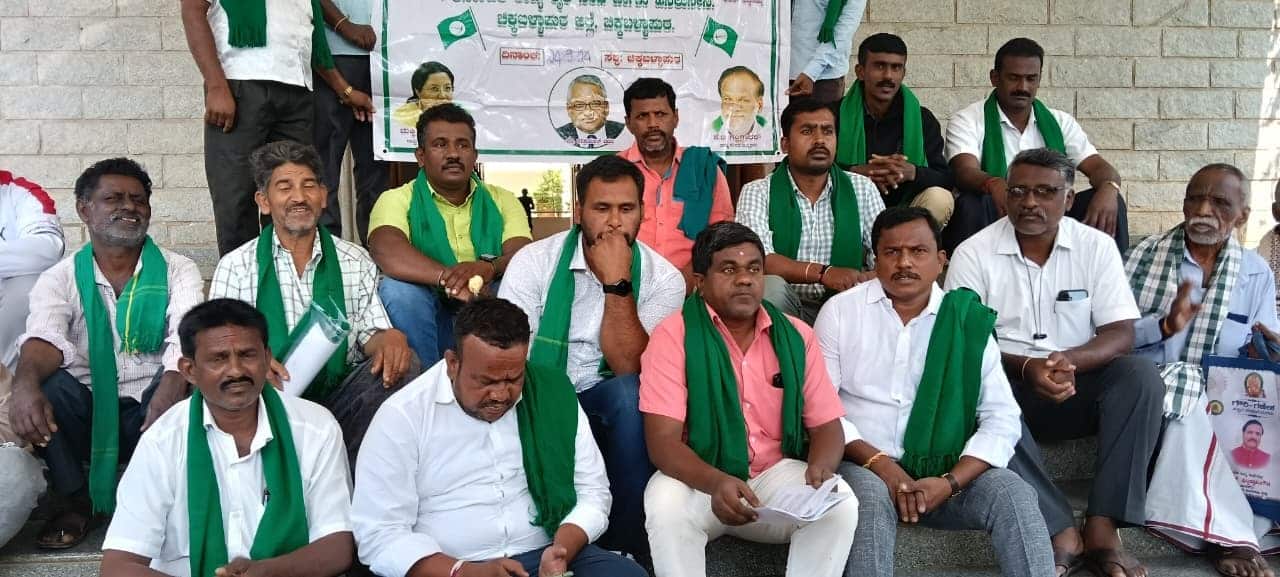 ಪ್ರತಿಭಟನಾ ಸ್ಥಳಕ್ಕೆ ಆಗಮಿಸಿದ ಜಿಲ್ಲಾಧಿಕಾರಿ ಪಿ.ಎನ್.ರವೀಂದ್ರ ರವರಿಗೆ ಸಂಘದ ಮುಖಂಡರು ಮನವಿ ಪತ್ರ ನೀಡಿ ರೈತರ ನೆರವಿಗೆ ಬರಬೇಕೆಂದು ಒತ್ತಾಯಿಸಿದರು.ಪ್ರತಿಭಟನೆಯಲ್ಲಿ ಕರ್ನಾಟಕ ರಾಜ್ಯ ರೈತ ಸಂಘ ಹಾಗೂ ಹಸಿರು ಸೇನೆ ಜಿಲ್ಲಾ ಸಮಿತಿ ಪದಾಧಿಕಾರಿಗಳಾದ ಎಂ.ಆರ್.ಲಕ್ಷ್ಮಿ ನಾರಾಯಣ್, ಲೋಕೇಶಗೌಡ, ರಾಜಣ್ಣ, ಎಚ್,ಎನ್.ಕದೀರೇಗೌಡ, ಬೀಮಣ್ಣ, ಮುನೇಗೌಡ, ನವೀನ್ ಕುಮಾರ್, ವೈಪಿ,ಪ್ರದೀಪ್ ಕುಮಾರ್, ಸಂತೇಕಲ್ಲಹಳ್ಳಿ ದಿವಾಕರ್,ಚೆಂದನ್,ಮಂಜುನಾದ್, ಡಿವಿ,ನಾರಾಯಣಸ್ವಾಮಿ, ಯಣ್ಣಂಗೂರು ಈರಪ್ಪ,ನಡುಪಿನಾಯಕನಹಳ್ಳಿ ವಾಸುದೇವ ಮೂರ್ತಿ, ಚೊಕ್ಕಂಡಹಳ್ಳಿ ದೇವರಾಜ್, ಮತ್ತಿತರರು ಇದ್ದರು.