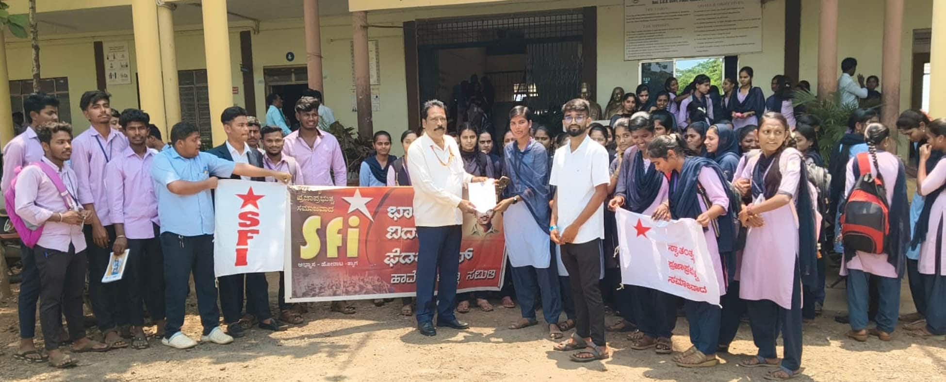 ಎಸ್ಎಫ್ಐ ಕಾಲೇಜ್ ಘಟಕದ ಅಧ್ಯಕ್ಷ ಅವೇಶ ಪಟೇಲ್, ಕಾರ್ಯದರ್ಶಿ ರೆಹನ್ ಪಠಾಣ, ಪ್ರಮುಖರಾದ ಕುಸುಮ ಎನ್., ಮಿನಾಜ್ ದ್ಯಾಮನಕೊಪ್ಪ, ಶಾಬರ್ ಮನಿಯಾಜ್, ಮುಸ್ತಾಕ್ ಕಫಜ್, ಉಸ್ಮಾನ್ ಜಮದಾರ, ತಸ್ಮೀಯ ಎಚ್., ಸಂಗೀತಾ ಸವಣೂರ, ನೇಹಾ ಎಂ., ಅಕ್ಕಮ್ಮ ಉಡುಪಿ, ಫಿಜಾ ಮುಲ್ಲಾ, ಸಾನಿಯಾ ಇದ್ದರು.