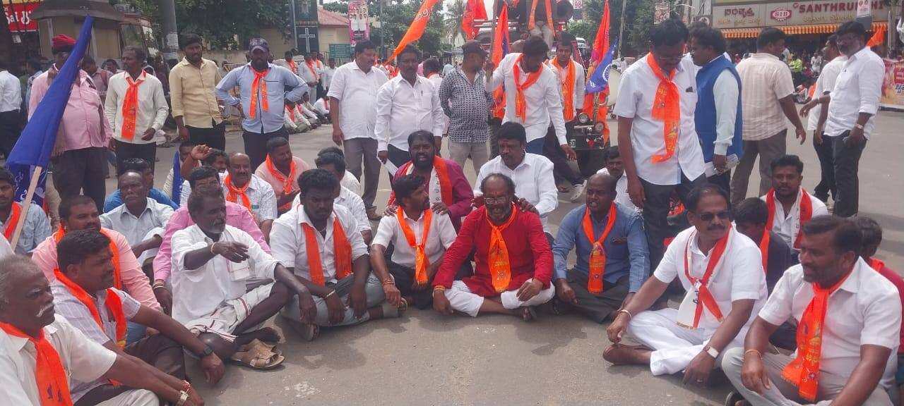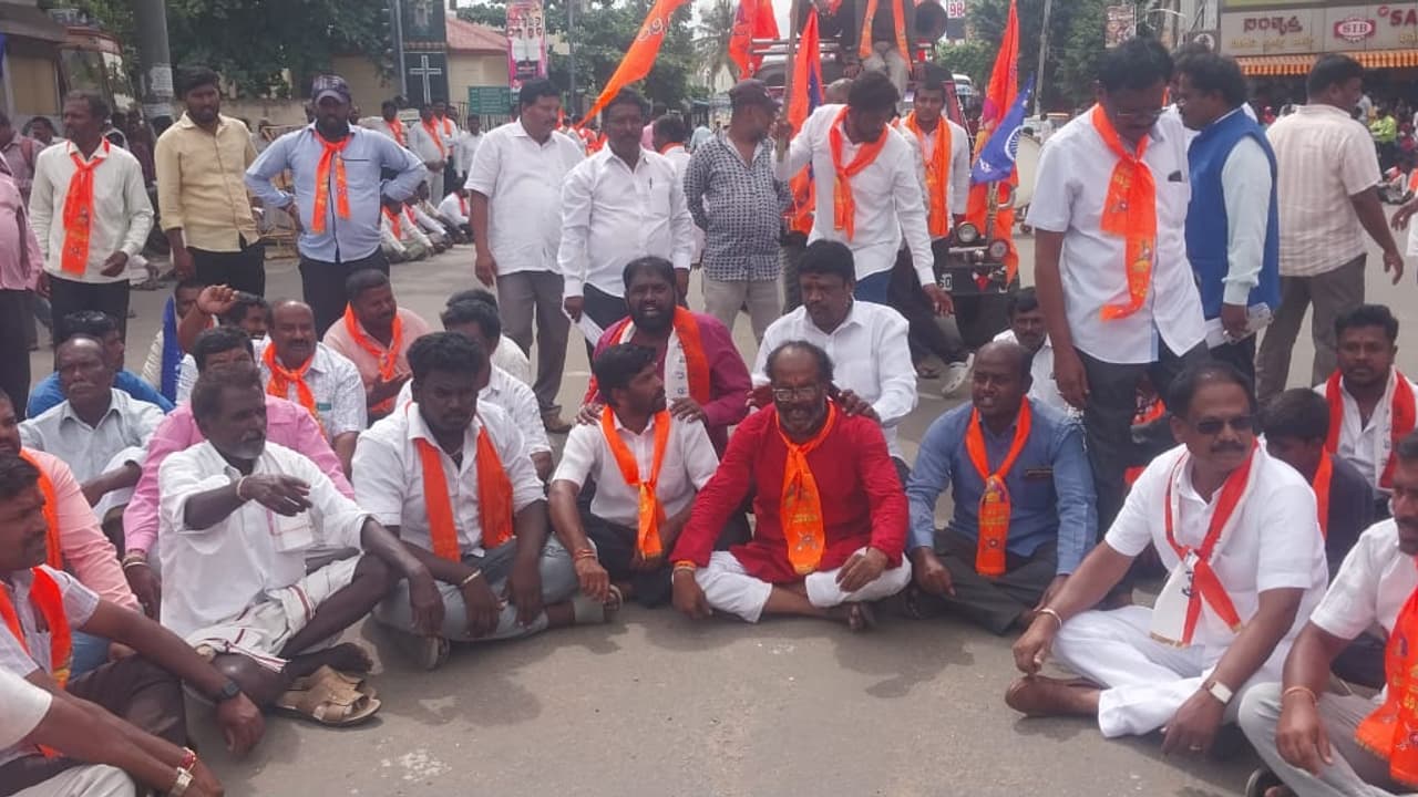 ವಾಹನ ಸಂಚಾರ ಅಸ್ತವ್ಯಸ್ತರಸ್ತೆ ತಡೆಯಿಂದಾಗಿ ರಸ್ತೆಯಲ್ಲಿ ವಾಹನಗಳು ಸಾಲುಗಟ್ಟಿ ನಿಂತಿದ್ದವು. ಈ ಸಂದರ್ಭದಲ್ಲಿ ವಾಹನ ಸವಾರರು ಮತ್ತು ಪ್ರತಿಭಟನಾಕಾರ ನಡುವೆ ಮಾತಿನ ಚಕಮಕಿ ನಡೆಯಿತು. ಸ್ಥಳದಲ್ಲಿದ್ದ ಪೊಲೀಸರು ಮಧ್ಯಪ್ರವೇಸಿ ಪರಿಸ್ಥಿತಿ ತಿಳಿಗೊಳಿಸಿದರು. ಜಿಲ್ಲಾಧಿಕಾರಿ ಸ್ಥಳಕ್ಕೆ ಆಗಮಿಸಿ ತಮ್ಮ ಸಮಸ್ಸೆ ಆಲಿಸುವಂತೆ ಸುವಂತೆ ಪ್ರತಿಭಟನಾಕಾರರು ಪಟ್ಟುಹಿಡಿದರುಬಳಿಕ ಉಪ ವಿಭಾಗಾಧಿಕಾರಿ ಡಾ.ಎಚ್.ಪಿ.ಎಸ್. ಮೈತ್ರಿ ಸ್ಥಳಕ್ಕಾಗಮಿಸಿದರು. ಈ ವೇಳೆ ಮನವಿ ಸಲ್ಲಿಸಿ ಮಾತನಾಡಿದ ಮುಖಂಡ ಕೆ.ಆನಂದ್ ಕುಮಾರ್ ನಮ್ಮ ಸಮುದಾಯವು ಸಾಕಷ್ಟು ಹಿಂದೆ ಉಳಿದಿದೆ. ಹೀಗಿರುವ ಸಂದರ್ಭದಲ್ಲಿ ಬಲಿಷ್ಠ ಜಾತಿಗಳನ್ನು ಎಸ್.ಟಿ.ಗೆ ಸೇರ್ಪಡೆ ಮಾಡುವುದರಿಂದ ಮತ್ತಷ್ಟು ಹೊಡೆತ ಬಿದ್ದಂತಾಗುತ್ತದೆ. ಹೀಗಾಗಿ ಈ ಪಟ್ಟಿಯಲ್ಲಿರುವ ಜಾತಿಗಳನ್ನು ಬಿಟ್ಟು ಬೇರೆ ವರ್ಗಗಳನ್ನು ಎಸ್.ಟಿ.ಗೆ ಸೇರ್ಪಡೆ ಮಾಡುವುದನ್ನು ಕೂಡಲೇ ಕೈಬಿಡಬೇಕೆಂದು ಆಗ್ರಹಿಸಿದರು.