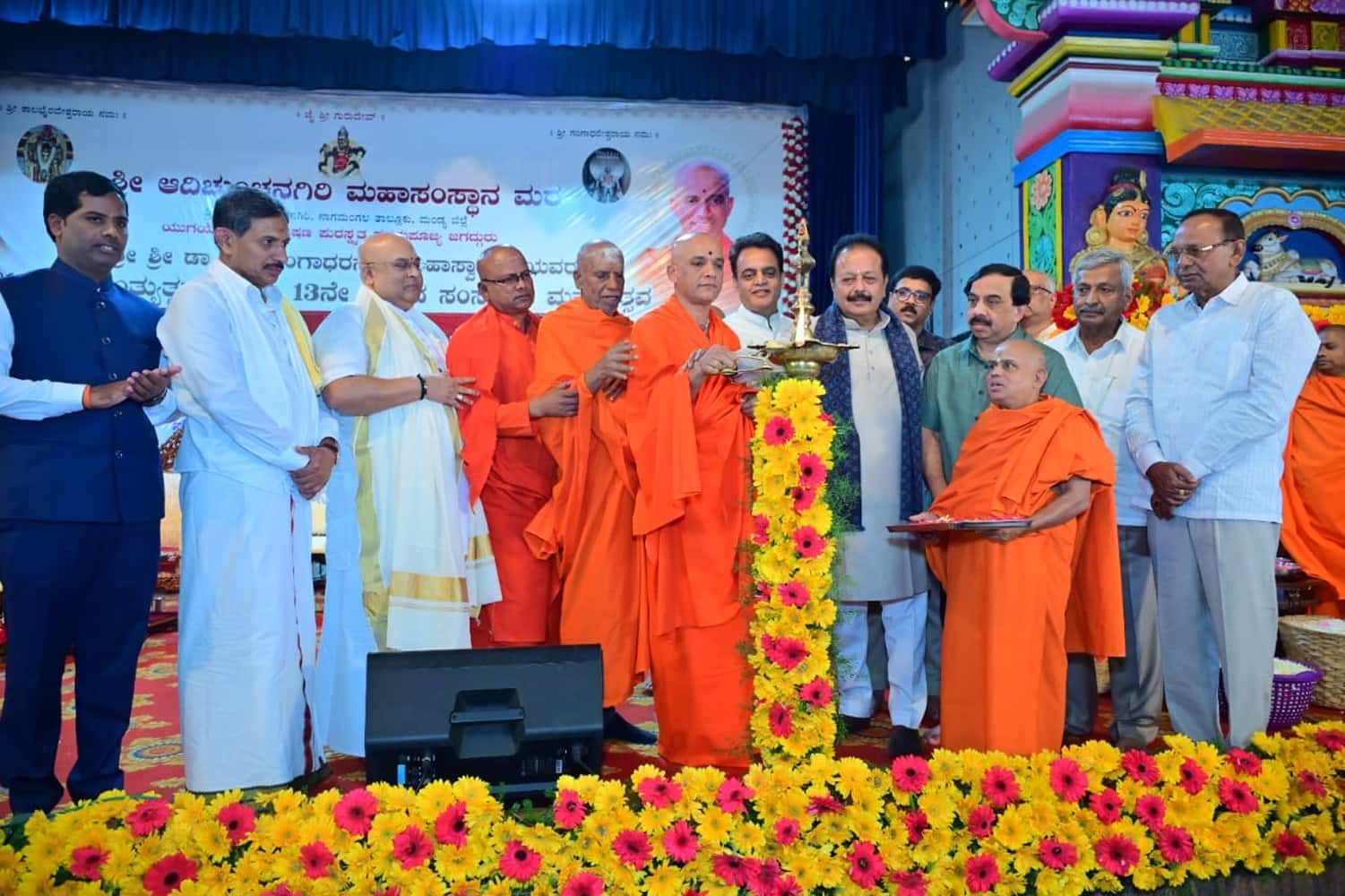 ಭೈರವೈಕ್ಯ ಶ್ರೀಗಳ ಜಯಂತ್ಯುತ್ಸವ ಮತ್ತು ಸಂಸ್ಮರಣಾ ಮಹೋತ್ಸವದ ಪ್ರಯುಕ್ತ ಶ್ರೀಕ್ಷೇತ್ರದ ಭೈರವೈಕ್ಯ ಡಾ. ಬಾಲಗಂಗಾಧರನಾಥ ಶ್ರೀಗಳ ಮಹಾಗದ್ದುಗೆ ಮತ್ತು ಪುತ್ಥಳಿಯನ್ನು ವಿವಿಧ ಬಗೆಯ ಹೂವುಗಳಿಂದ ವಿಶೇಷವಾಗಿ ಅಲಂಕರಿಸಲಾಗಿತ್ತು.ಆದಿಚುಂಚನಗಿರಿ ಶಿಕ್ಷಣ ಟ್ರಸ್ಟ್ನ ಪ್ರಧಾನ ಕಾರ್ಯದರ್ಶಿ ಪುರುಷೋತ್ತಮಾನಂದನಾಥ ಸ್ವಾಮೀಜಿ, ಚಿತ್ರದುರ್ಗದ ಕಬೀರಾನಂದ ಆಶ್ರಮದ ಶಿವಲಿಂಗಾನಂದ ಸ್ವಾಮೀಜಿ, ಕುಂಬಳಗೂಡು ಶಾಖಾಮಠದ ಪ್ರಕಾಶನಾಥಸ್ವಾಮೀಜಿ, ಮಾಜಿ ಶಾಸಕರಾದ ಕೆ.ಬಿ.ಚಂದ್ರಶೇಖರ್, ಎಚ್.ನಿಂಗಪ್ಪ, ಮಾಹಿತಿ ಹಕ್ಕು ಆಯೋಗದ ಆಯುಕ್ತ ರಾಜಶೇಖರ್, ಜಿಲ್ಲಾಧಿಕಾರಿ ಡಾ.ಕುಮಾರ, ಹಿರಿಯ ಪತ್ರಕರ್ತ ಸುದರ್ಶನ್ ಚನ್ನಂಗಿಹಳ್ಳಿ, ಶಂಭೂನಾಥಸ್ವಾಮೀಜಿ, ಸೋಮನಾಥಸ್ವಾಮೀಜಿ, ಚೈತನ್ಯನಾಥಸ್ವಾಮೀಜಿ, ಸಾಯಿಕೀರ್ತಿನಾಥಸ್ವಾಮೀಜಿ, ಸತ್ಕೀರ್ತಿನಾಥಸ್ವಾಮೀಜಿ, ಆದಿಚುಂಚನಗಿರಿ ಆಸ್ಪತ್ರೆಯ ಪ್ರಾಂಶುಪಾಲ ಡಾ.ಎಂ.ಜಿ.ಶಿವರಾಮು, ಶಿಕ್ಷಣ ಟ್ರಸ್ಟ್ನ ಆಡಳಿತಾಧಿಕಾರಿ ಡಾ.ಎ.ಟಿ.ಶಿವರಾಮು ಸೇರಿದಂತೆ ಸಹಸ್ರಾರು ಭಕ್ತರು ಇದ್ದರು.