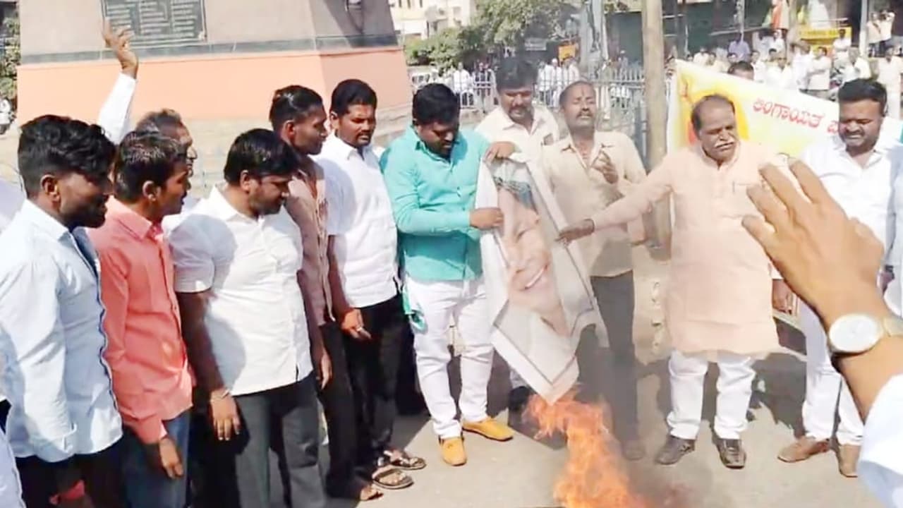 ಪಂಚಮಸಾಲಿ 2ಎ ಮೀಸಲಾತಿ ಹೋರಾಟದ ವೇಳೆ ನಡೆದ ಲಾಠಿ ಚಾರ್ಜ್ ಖಂಡಿಸಿ ಮತ್ತು ಮುಖ್ಯಮಂತ್ರಿಗಳು ಪಂಚಮಸಾಲಿ ಸಮುದಾಯ ಹಾಗೂ ಸ್ವಾಮೀಜಿಗಳ ಕ್ಷಮೆ ಕೇಳಬೇಕು, ಪ್ರತಿಭಟನಾಕಾರರ ಮೇಲೆ ಹಾಕಿದ ಕೇಸ್ಗಳನ್ನು ವಾಪಸ್ ಪಡೆಯಬೇಕು ಎಂದು ಒತ್ತಾಯಿಸಿ ಪಂಚಮಸಾಲಿ ಸಮುದಾಯದ ಇಂಡಿ ತಾಲೂಕು ಮುಖಂಡರು ನಗರದಲ್ಲಿ ಪ್ರತಿಭಟನೆ ನಡೆಸಿದರು.ನಗರದ ಬಸವೇಶ್ವರ ವೃತ್ತದಲ್ಲಿ ಮಾನವ ಸರಪಳಿ ರಚಿಸಿ ರಸ್ತೆ ತಡೆ ನಡೆಸಿದರು. ಸರ್ಕಾರದ ವಿರುದ್ಧ ಘೋಷಣೆ ಕೂಗಿ ಟೈರ್ಗಳಿಗೆ ಬೆಂಕಿ ಹಚ್ಚಿ, ಮುಖ್ಯಮಂತ್ರಿ ಸಿದ್ದರಾಮಯ್ಯನವರ ಭಾವಚಿತ್ರ ದಹಿಸಿ ಆಕ್ರೋಶ ವ್ಯಕ್ತಪಡಿಸಿದರು.