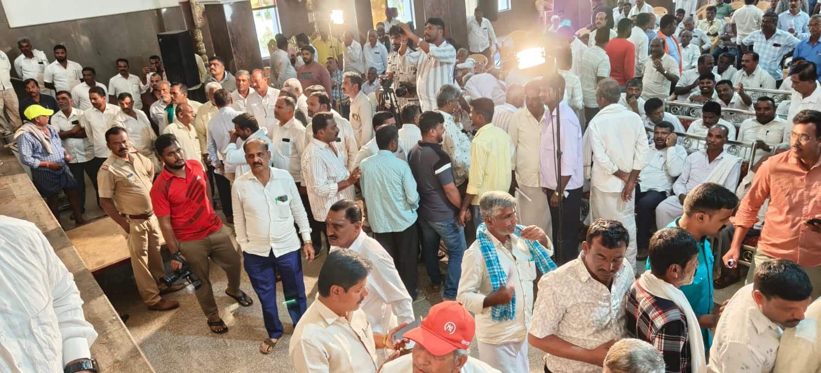 ಹಿಂಬಾಗಿಲಿನಿಂದ ಅಧ್ಯಕ್ಷ ಪರಾರಿ:ಸ್ವಲ್ಪ ಸಮಯದ ಬಳಿಕ ಮತ್ತೆ ಸಭೆಯಲ್ಲಿ ಅಧ್ಯಕ್ಷರ ವಿರುದ್ಧ ಸದಸ್ಯರ ಕೂಗಾಟ, ಆಕ್ರೋಶ ಹೆಚ್ಚಾಗತೊಡಗಿತು. ಪರಿಸ್ಥಿತಿಯನ್ನು ಅರಿತ ಪೊಲೀಸರು ಅಧ್ಯಕ್ಷ ಎಂ.ಎಲ್.ಸುರೇಶ್ ಅವರನ್ನು ಕನಕ ಭವನದ ಹಿಂಬಾಗಿಲ ಮೂಲಕ ಕರೆದೊಯ್ದರು. ಸದಸ್ಯರ ಮಾತಿಗೆ ಉತ್ತರ ನೀಡಲಾಗದೆ ಅಧ್ಯಕ್ಷ ಎಂ.ಎಲ್.ಸುರೇಶ್ ಕೂಡ ಭವನದಿಂದ ಪರಾರಿಯಾದರು.