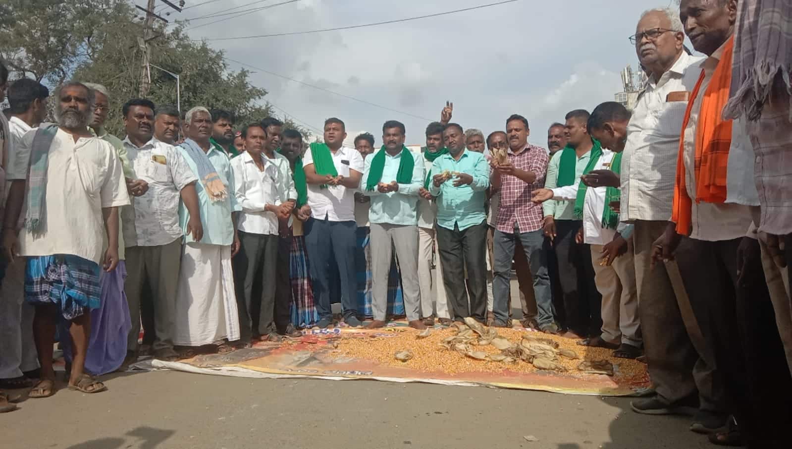 ಲಕ್ಷ್ಮೇಶ್ವರ: ಗೋವಿನಜೋಳವನ್ನು ಬೆಂಬಲ ಯೋಜನೆ ಅಡಿಯಲ್ಲಿ ಖರೀದಿ ಕೇಂದ್ರ ಆರಂಭಿಸಲು ಆಗ್ರಹಿಸಿ ಭಾನುವಾರ ರೈತರು ಗೋವಿನಜೋಳವನ್ನು ರಸ್ತೆಗೆ ಸುರಿದು ಸರ್ಕಾರದ ವಿರುದ್ಧ ಆಕ್ರೋಶ ವ್ಯಕ್ತಪಡಿಸಿದರು.