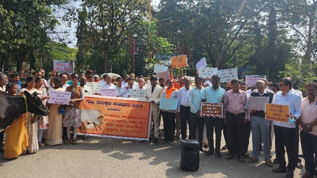 ಮಾರಕಾಸ್ತ್ರಗಳಿಂದ ಗೋವುಗಳ ಮೇಲೆ ಹಲ್ಲೆ ನಡೆಸಿ ವಿಕೃತಿ ಮೆರೆದಿರುವ ದುರುಳರನ್ನು ಬಂಧಿಸಿ ಕಠಿಣ ಶಿಕ್ಷೆ ವಿಧಿಸಬೇಕು, ಇಂತಹ ದುಷ್ಕೃತ್ಯಗಳು ಮರುಕಳಿಸದಂತೆ ಸರ್ಕಾರ ಎಚ್ಚರಿಕೆ ಕ್ರಮ ತೆಗೆದುಕೊಳ್ಳಬೇಕು ಎಂದು ಒತ್ತಾಯಿಸಿ ಗೋ ಸಂರಕ್ಷಣಾ ಸಂವರ್ಧನ ಸಮಿತಿ ನೇತೃತ್ವದಲ್ಲಿ ಶುಕ್ರವಾರ ನಗರದಲ್ಲಿ ಪ್ರತಿಭಟನೆ ನಡೆಯಿತು.