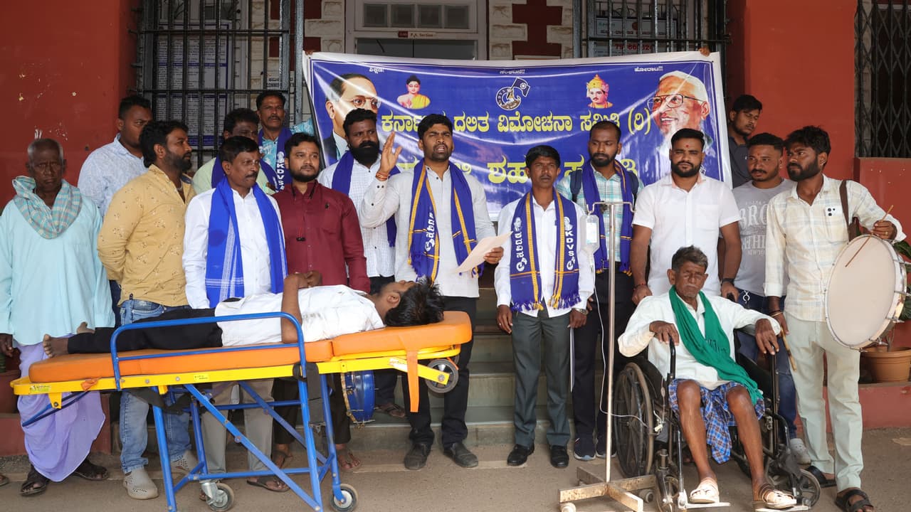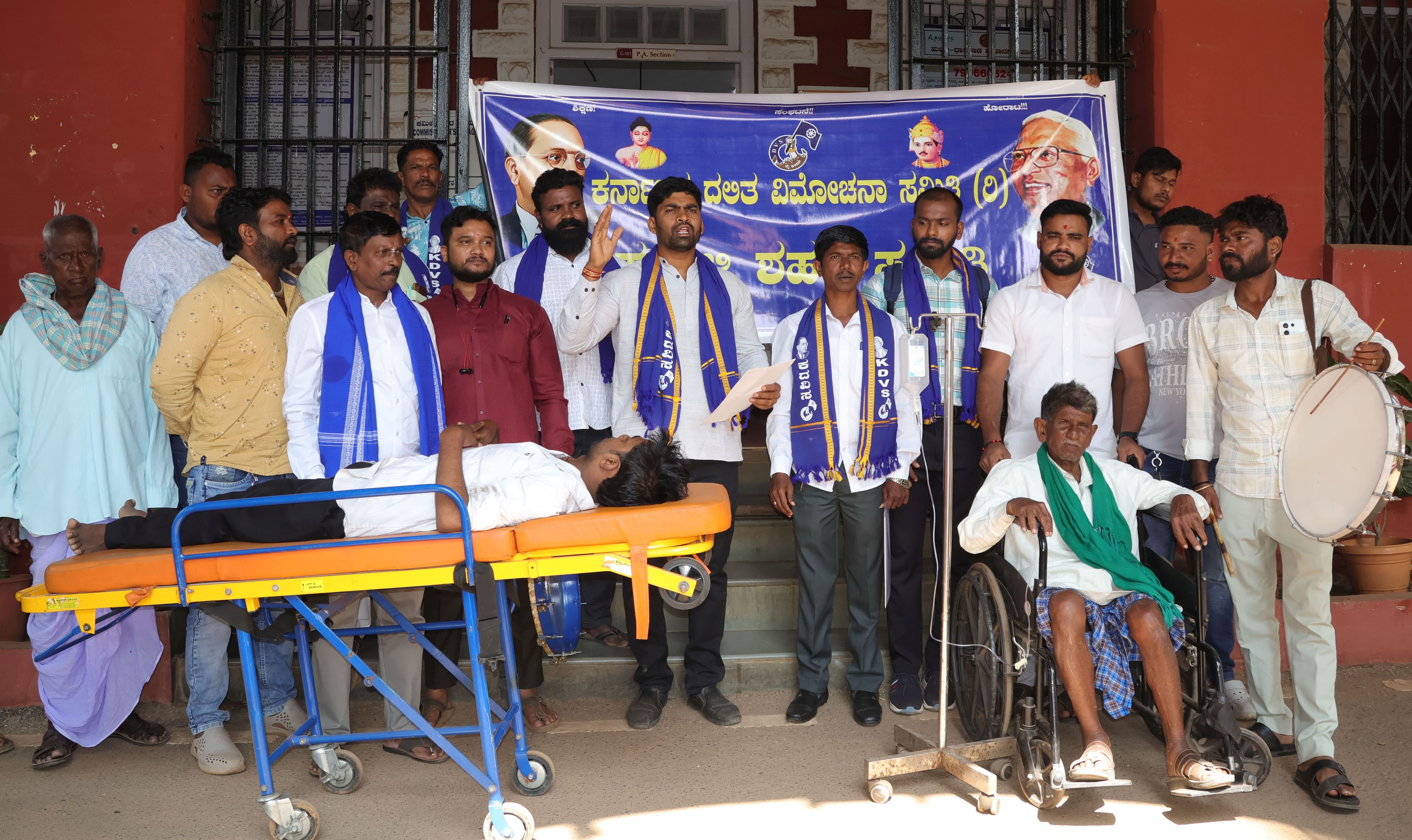 ಹು-ಧಾ ಮಹಾನಗರ ಪಾಲಿಕೆಯ ವೈದ್ಯಾಧಿಕಾರಿ ಹುದ್ದೆಯನ್ನು ಸರ್ಕಾರ ರದ್ದುಗೊಳಿಸಿರುವುದನ್ನು ಖಂಡಿಸಿ ಕರ್ನಾಟಕ ದಲಿತ ವಿಮೋಚನಾ ಸಮಿತಿಯ ಹುಬ್ಬಳ್ಳಿ ಶಹರ ಸಮಿತಿ ವತಿಯಿಂದ ಇಲ್ಲಿನ ಮಹಾನಗರ ಪಾಲಿಕೆ ಆಯುಕ್ತರ ಕಚೇರಿ ಎದುರು ಸೋಮವಾರ ಪ್ರತಿಭಟನೆ ನಡೆಯಿತು.ಸ್ಟ್ರೇಚರ್ ಮೇಲೆ ಪೇಶೆಂಟ್ ಮಲಗಿಸಿದಂತೆ, ವ್ಹೀಲ್ ಚೇರ್ ಮೇಲೆ ಮತ್ತೊಬ್ಬ ರೋಗಿಯನ್ನು ಕರೆದುಕೊಂಡು ಬಂದು ವೈದ್ಯಾಧಿಕಾರಿ ಹುದ್ದೆ ರದ್ದುಪಡಿಸಿದರೆ ಏನೆಲ್ಲ ಸಮಸ್ಯೆ ಎದುರಾಗುತ್ತದೆ ಎಂಬುದನ್ನು ಅಣಕು ಪ್ರದರ್ಶಿಸುವ ಮೂಲಕ ಆಕ್ರೋಶ ವ್ಯಕ್ತಪಡಿಸಿದರು.