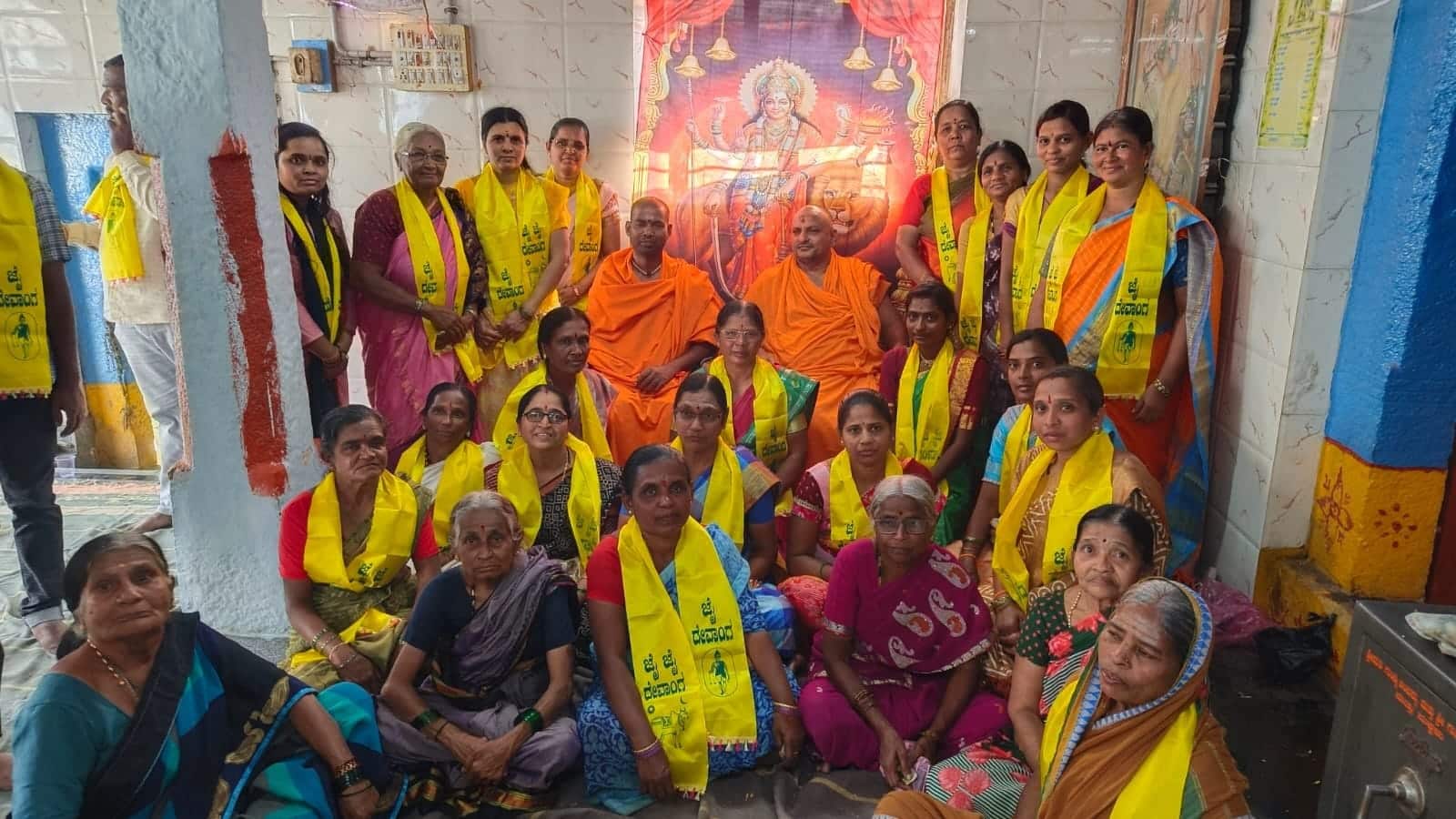 ಕಂಪ್ಲಿ: ಬಣ್ಣದ ಶ್ರೀಚೌಡೇಶ್ವರಿದೇವಿ ದೇವಸ್ಥಾನಕ್ಕೆ ಪೀತಾಂಬರ ಸೀರೆ ಪಾದಯಾತ್ರೆ ಆಗಮಿಸಿದ ಸಂದರ್ಭದಲ್ಲಿ ದೇವಾಂಗಮಠದ ಸಾವಿತ್ರಮ್ಮ, ಸಮಾಜದ ನಗರ ಅಧ್ಯಕ್ಷ ಸಪ್ಪರದ ರಾಘವೇಂದ್ರ, ಮಹಿಳಾ ಅಧ್ಯಕ್ಷ ಇಂಡಿ ತಾರಾ, ಪದಾಧಿಕಾರಿಗಳಾದ ಮಾಗನೂರು ರಾಜೇಶವರ್ಮ, ಎಸ್. ತುಳಸಿರಾಮಚಂದ್ರ, ದೂಪದ ಸುಭಾಶ್ಚಂದ್ರ, ವಣಕಿ ಶಂಕರ್, ಗದ್ಗಿ ವಿರೂಪಾಕ್ಷಿ, ವಣಕಿ ವೆಂಕಟೇಶ, ದೂಪದ ಪ್ರಶಾಂತ್, ಪುಟ್ಟಿ ರಾಘವೇಂದ್ರ, ಎಸ್. ಶಂಕ್ರಮ್ಮ, ಓದಾ ರಾಧಮ್ಮ, ಮಿಟ್ಟಿ ವಿಜಯಲಕ್ಷ್ಮೀ, ಕಾಳ್ಗಿ ವಿಶಾಲಾಕ್ಷಿ, ಮಾಗನೂರು ಸುಧಾ ಸೇರಿ ಮಹಿಳಾ ಪದಾಧಿಕಾರಿಗಳಿದ್ದರು.