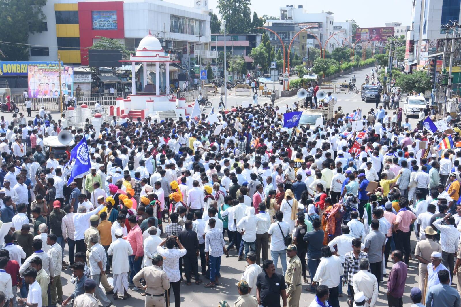 ವಿಜಯಪುರ ಜಿಲ್ಲಾ ಬಂದ್ ಬಹುತೇಕ ಯಶಸ್ವಿಕನ್ನಡಪ್ರಭ ವಾರ್ತೆ ವಿಜಯಪುರ ಸುಪ್ರೀಂಕೋರ್ಟ್ ಮುಖ್ಯ ನ್ಯಾಯಮೂರ್ತಿ ಬಿ.ಆರ್.ಗವಾಯಿ ಅವರ ಮೇಲೆ ಶೂ ಎಸೆಯುವ ಪ್ರಯತ್ನ ಖಂಡಿಸಿ ವಿವಿಧ ದಲಿತಪರ ಸಂಘಟನೆಗಳು ಕರೆ ನೀಡಿದ್ದ ವಿಜಯಪುರ ಬಂದ್ ಬಹುತೇಕ ಯಶಸ್ವಿಯಾಗಿದೆ. ಬಂದ್ ಪ್ರಯುಕ್ತ ಬೃಹತ್ ಪ್ರತಿಭಟನಾ ಮೆರವಣಿಗೆ ನಡೆಸಲಾಯಿತು. ಜಿಲ್ಲೆಯ ಪ್ರಗತಿಪರ ಸಂಘಟನೆಗಳು, ದಲಿತ ಸಂಘಟನೆಗಳು, ಮಹಿಳಾ ಸಂಘಟನೆಗಳು, ವಿದ್ಯಾರ್ಥಿ ಸಂಘಟನೆಗಳು, ಬುದ್ಧಿಜೀವಿಗಳು ಭಾಗವಹಿಸಿದ್ದರು.
