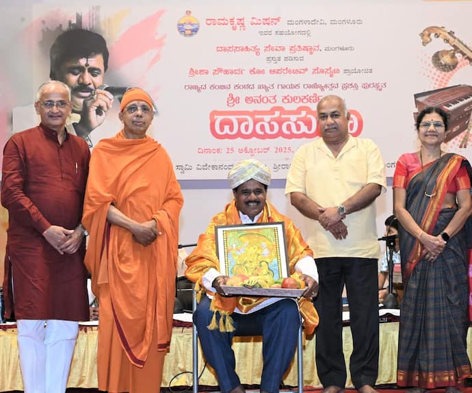ಮಂಗಳೂರು: ಶ್ರೀಶಾ ಸೌಹಾರ್ದ ಕೋಆಪರೇಟಿವ್ ಸೊಸೈಟಿಯ ಪ್ರಾಯೋಜಕತ್ವದಲ್ಲಿ ದಾಸಸಾಹಿತ್ಯ ಸೇವಾ ಪ್ರತಿಷ್ಠಾನವು ನಗರದ ರಾಮಕೃಷ್ಣ ಆಶ್ರಮದ ಸಭಾಂಗಣದಲ್ಲಿ ಆಯೋಜಿಸಿದ, ರಾಜ್ಯೋತ್ಸವ ಪ್ರಶಸ್ತಿ ಪುರಸ್ಕೃತ ಗಾಯಕ ಪಂಡಿತ್ ಅನಂತ ಕುಲಕರ್ಣಿ ಅವರ ‘ದಾಸವಾಣಿ’ (ಹರಿದಾಸರ ಕೃತಿ ಕೀರ್ತನೆಗಳ ಗಾಯನ) ಕಾರ್ಯಕ್ರಮ ಶ್ರೋತೃಗಳ ಮನಸೂರೆಗೊಂಡಿತು.