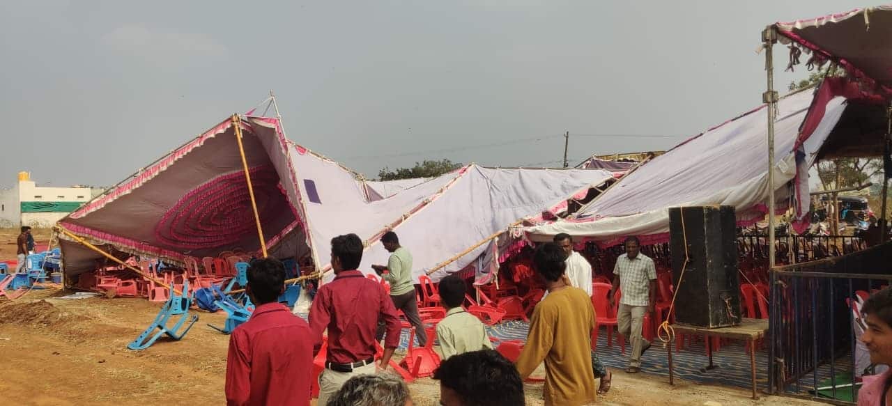 ವೇದಿಕೆ ಸಮಾರಂಭ ಮುಗಿದ ಸ್ವಲ್ಪ ಹೊತ್ತಿನಲ್ಲಿ ಜೋರಾಗಿ ಬೀಸಿದ ಗಾಳಿಗೆ ಪೆಂಡಾಲ್ ನೆಲಕ್ಕೆ ಉರುಳಿಬಿತ್ತು. ಅತಿಥಿಗಳು ಸೇರಿದಂತೆ ಯಾರಿಗೂ ಯಾವುದೇ ರೀತಿ ತೊಂದರೆಯಾಗಲಿಲ್ಲ. ಸಚಿವರ ಅಂಗರಕ್ಷಕರು ಅವರನ್ನು ಬಚಾವ್ ಮಾಡಿದರು. ಇದರಿಂದ ಭಾರಿ ಅನಾಹುತವೊಂದು ಸ್ವಲ್ಪದರಲ್ಲಿಯೇ ತಪ್ಪಿದಂತಾಯಿತು.