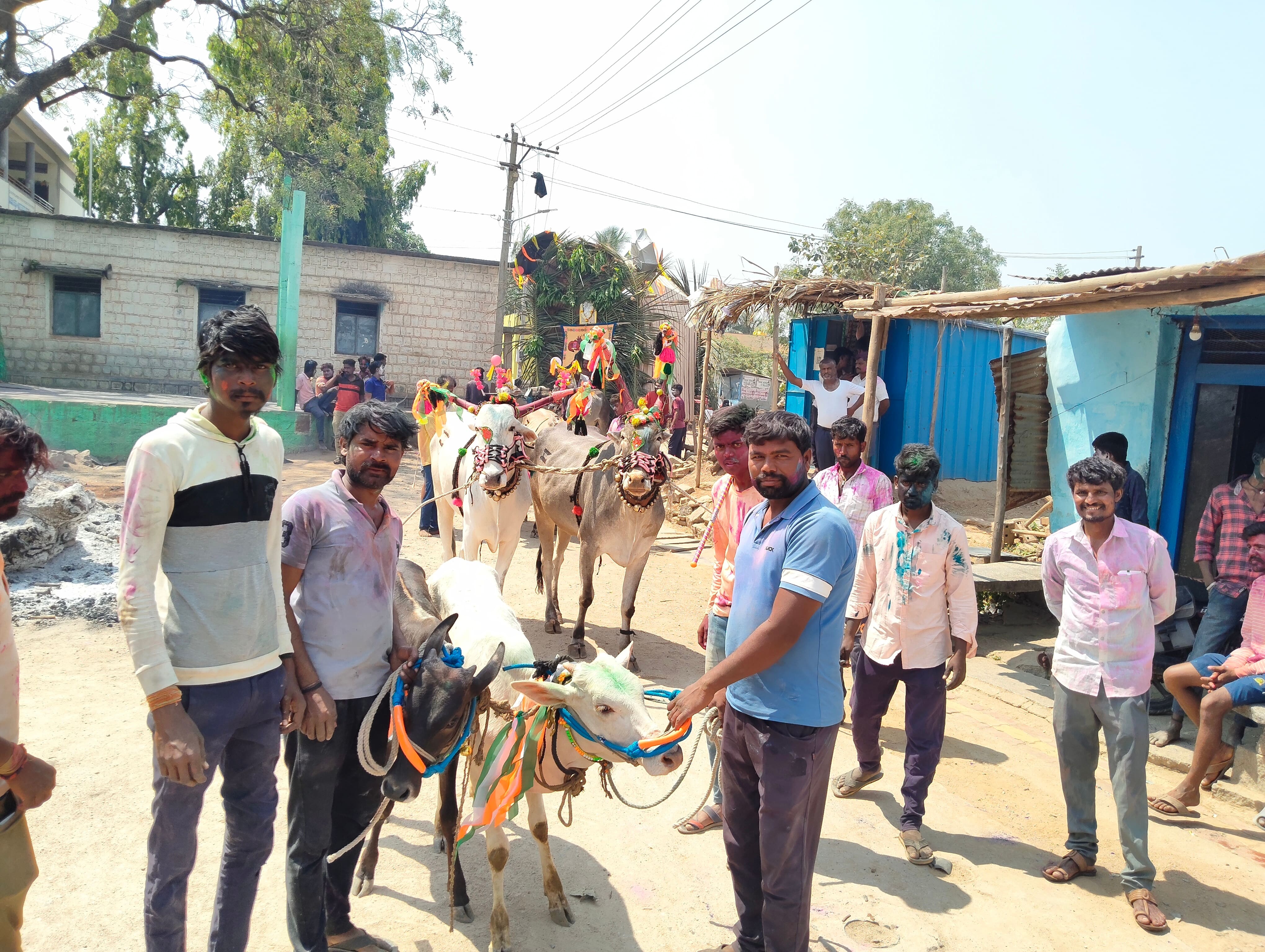 ರಾತ್ರಿ ವೇಳೆ ಸಂಗ್ರಹಿಸಿದ್ದ ಕಟ್ಟಿಗೆ,ಕುಳ್ಳನ್ನು ಕಾಮಣ್ಣನೆಂದು ಪೂಜಿಸಿ ಸುಟ್ಟರು.ಬೆಳಗ್ಗೆ ಅದೇ ಬೆಂಕಿಯ ತುಂಡನ್ನು ಮನೆಗೆ ತಂದು ಮನೆ ಮುಂದೆ ಹುಳಿ ಕಡಲೆ ಸುಟ್ಟು ತಿಂದರು. ನಂತರ ಬಣ್ಣದಾಟದಲ್ಲಿ ಜನತೆ ಮಿಂದೆದ್ದರು.ಓಕುಳಿ ಬಂಡಿ:ಪಟ್ಟಣದ ಕೋಳಿಪೇಟೆಯ ಜನತೆ ಎತ್ತಿನ ಓಕುಳಿ ಬಂಡಿ ನಿರ್ಮಿಸಿದ್ದರು.ಎತ್ತಿನ ಬಂಡಿಯಲ್ಲಿ ಬಣ್ಣ ತುಂಬಿದ ಬ್ಯಾರಲ್ ಇರಿಸಿದ್ದರು. ದಾರಿಯೂದ್ದಕ್ಕೂ ಬಣ್ಣ ಎರಚುತ್ತಾ ತೆರಳಿದರು. ಈ ಬಂಡಿಯ ಮುಂದೆ ಅಲಂಕರಿಸಿದ್ದ ಎತ್ತಿನ ಬಂಡಿ ಹಾಗೂ ಜೋಡೆತ್ತು,ಎರಡು ಕರುಗಳ ಮೆರವಣಿಗೆ ವಾದ್ಯ ಮೇಳದೊಂದಿಗೆ ಜರುಗಿತು. ಯುವಕ ವೃಂದ ಸಹ ಬಣ್ಣದಾಟದಲ್ಲಿ ಕೇಕೆ ಹಾಕುತ್ತಾ ಹೆಜ್ಜೆ ಹಾಕಿ ಸಂತಸಪಟ್ಟರು. ಪಟ್ಟಣದ ಪ್ರಮುಖ ಬೀದಿಗಳಲ್ಲಿ ಈ ಓಕುಳಿ ಬಂಡಿ ಚಲಿಸಿತು.ದಾರಿಯುದ್ದಕ್ಕೂ ಬಂಡಿಯ ಬ್ಯಾರಲಿನಲ್ಲಿದ್ದ ಬಣ್ಣ ಎರಚುತ್ತಾ ಸಾಗಿದರು.