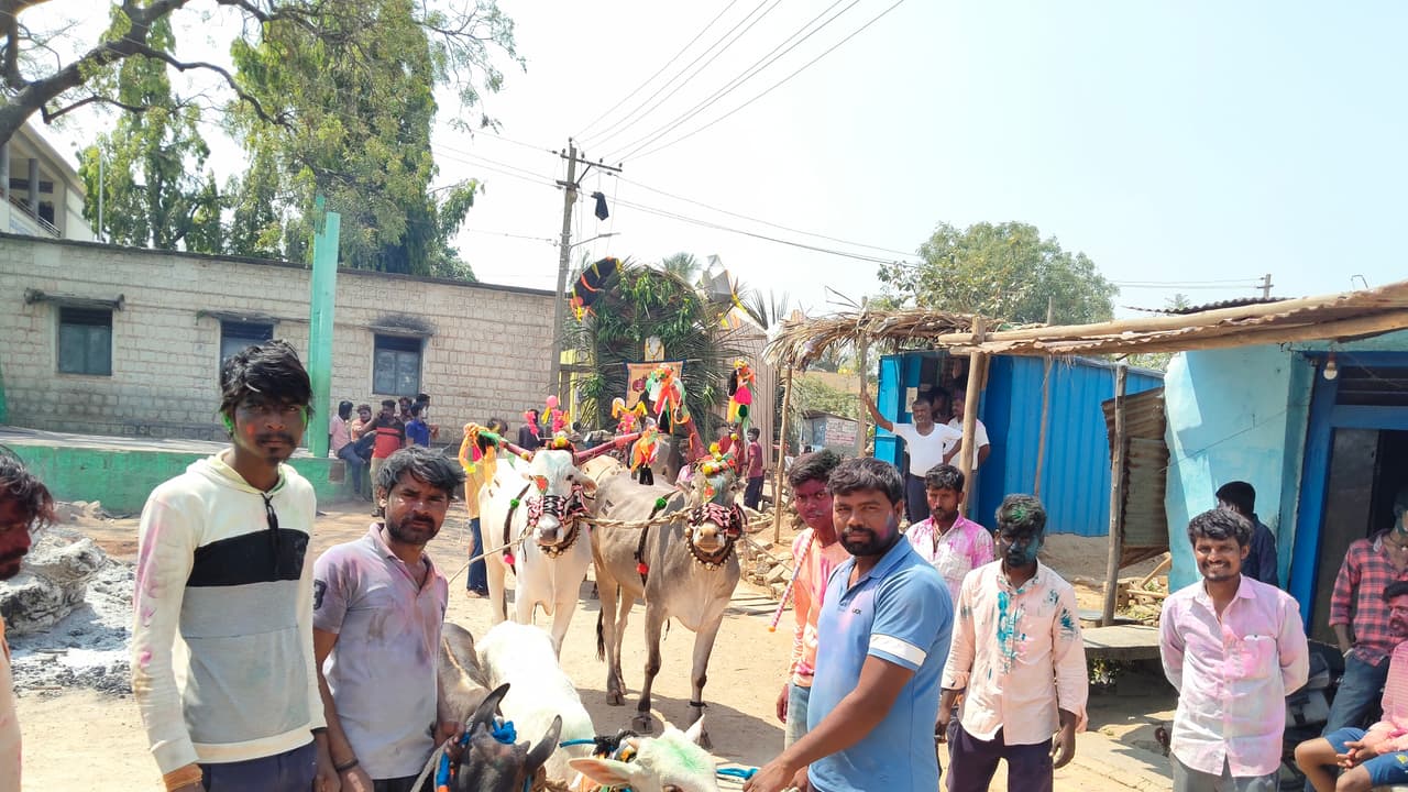 ಎತ್ತಿನ ಬಂಡಿಯಲ್ಲಿ ಬಣ್ಣ ತುಂಬಿದ ಬ್ಯಾರಲ್ ಇರಿಸಿದ್ದರು. ದಾರಿಯೂದ್ದಕ್ಕೂ ಬಣ್ಣ ಎರಚುತ್ತಾ ತೆರಳಿದರು