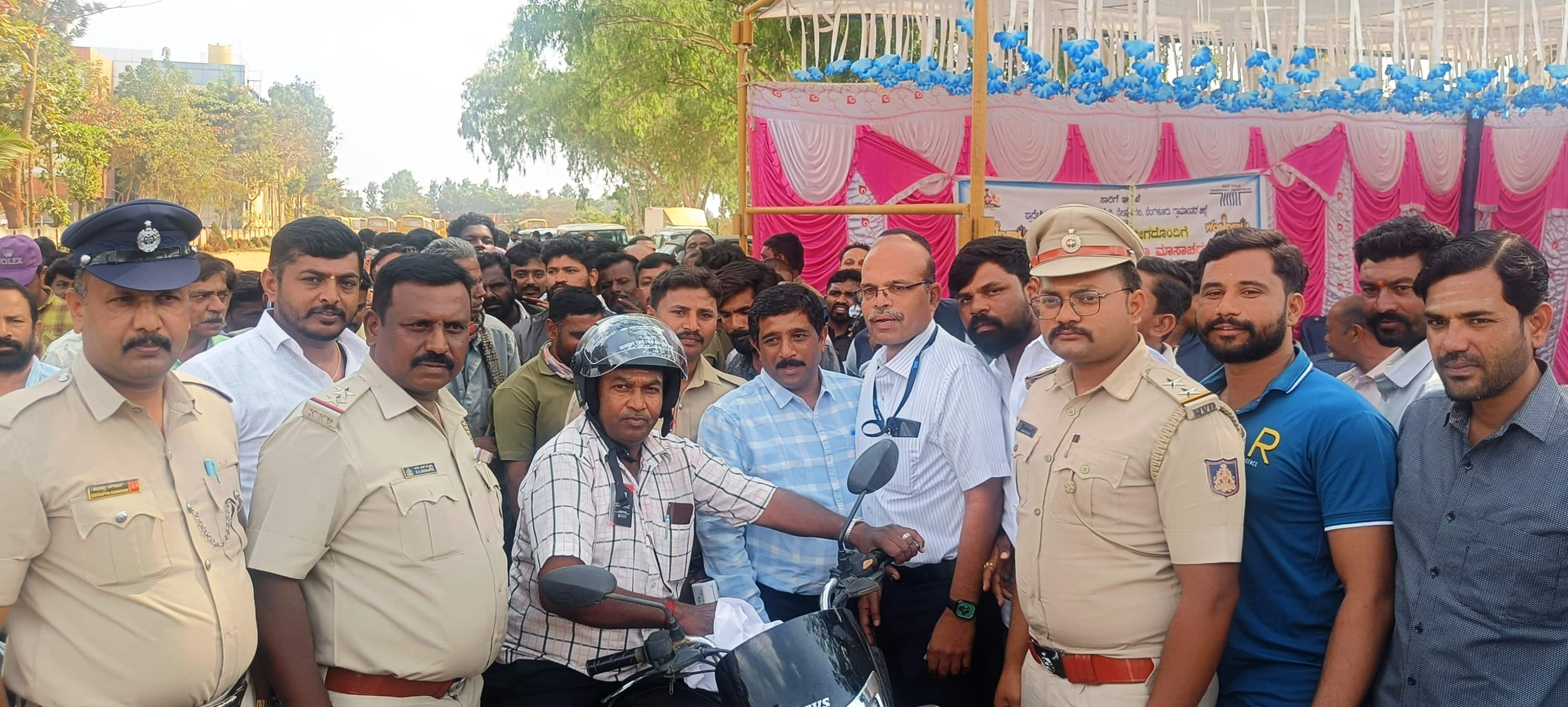 ಪಿಎಸ್ಐ ಸಿದ್ದಪ್ಪ ಮಾತನಾಡಿ ಭಾರತದಲ್ಲಿ ಪ್ರತಿವರ್ಷ ರೋಗರುಜಿನಗಳಿಗೆ ಬಲಿಯಾಗುವವರಿಗಿಂತ ರಸ್ತೆ ಅಪಘಾತಗಳಲ್ಲಿ ಸಾಯುವವರ ಸಂಖ್ಯೆ ಹೆಚ್ಚಾಗಿದೆ. ಆದ್ದರಿಂದ ಪ್ರತಿಯೊಬ್ಬರೂ ಹೆಲ್ಮೆಟ್ ಧರಿಸಿ ತಮ್ಮ ಪ್ರಾಣ ಕಾಪಾಡಿಕೊಳ್ಳಲು ಮುಂದಾಗಬೇಕು. ಹೆಲ್ಮೆಟ್ ಧರಿಸದವರನ್ನು ಹಿಡಿದು ದಂಡ ವಿಧಿಸುವುದು ಪೊಲೀಸರ ಉದ್ದೇಶವಲ್ಲ. ಪ್ರತಿಯೊಬ್ಬರೂ ಹೆಲ್ಮೆಟ್ ಧರಿಸಿ ತಮ್ಮ ಅಮೂಲ್ಯ ಜೀವ ಕಾಪಾಡಲಿ ಎಂಬ ಸದುದ್ದೇಶ ಪೊಲೀಸ್ ಇಲಾಖೆಯದ್ದಾಗಿದೆ ಎಂದರು.ಕಾರ್ಯಕ್ರಮದಲ್ಲಿ ಸಾರಿಗೆ ಇಲಾಖೆಯ ಅಧಿಕಾರಿ ನಾಗರಾಜಚಾರ್, ಅಂಬೇಡ್ಕರ್ ಸೇನೆ ಜಿಲ್ಲಾಧ್ಯಕ್ಷ ಟಗರು ಶಿವಸ್ವಾಮಿ, ವಂಡರ್ ಲಾ ಸಂಸ್ಥೆಯ ದೇವಯ್ಯ, ಲೋಕೇಶ್, ಸಂಘಟನೆಯ ಪದಾಧಿಕಾರಿಗಳಾದ ಮರಿಯಪ್ಪ ಮನು, ಶಿವು, ವಸಂತ್, ಹನುಮಂತರಾಜು ಮತ್ತೀತ್ತರಿದ್ದರು.