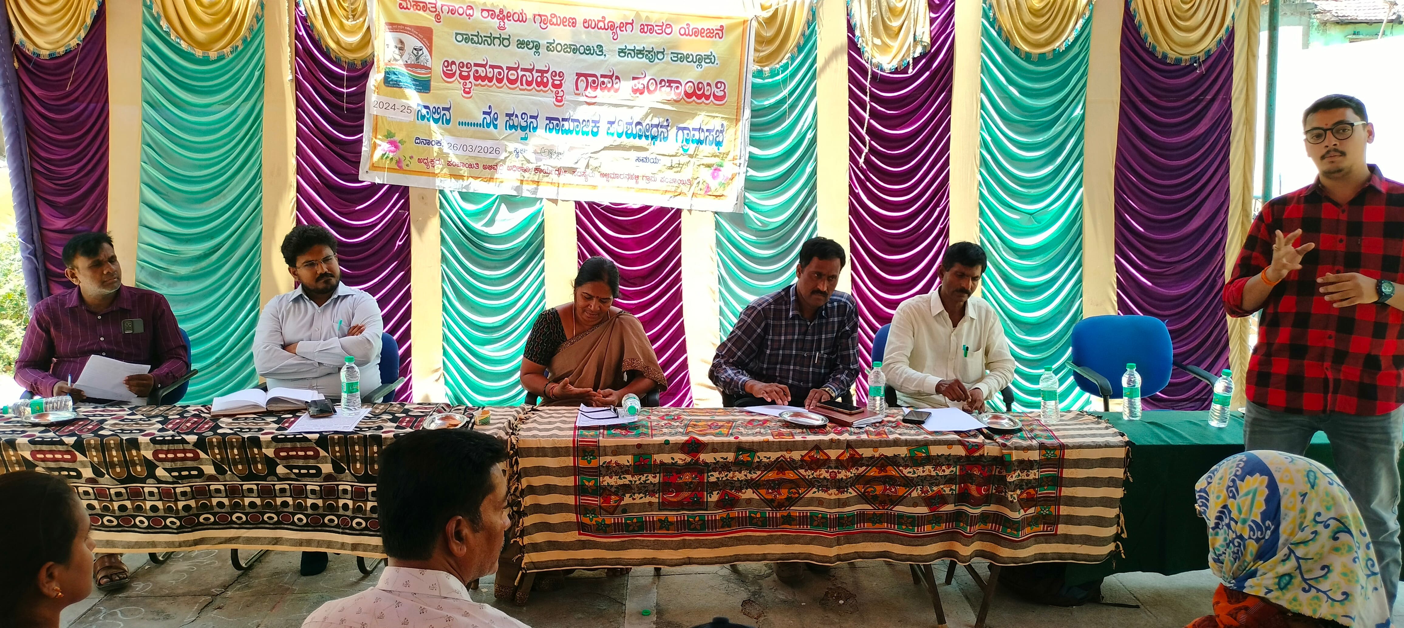 ತಾಲೂಕಿನ ಕಸಬಾ ಹೋಬಳಿ ಅಳ್ಳಿಮಾರನಹಳ್ಳಿ ಗ್ರಾಮ ಪಂಚಾಯಿತಿಯಲ್ಲಿ ಗುರುವಾರ ನಡೆದ 2024-25 ನೇ ಸಾಲಿನ ಸಾಮಾಜಿಕ ಲೆಕ್ಕ ಪರಿಶೋಧನಾ ಸಭೆಯಲ್ಲಿ ಮಾತನಾಡಿದ ಅವರು, ವಾರ್ಷಿಕವಾಗಿ ನಡೆಯುವ ಈ ಸಭೆಯ ಮಹತ್ವವನ್ನು ಜನತೆ ಇಂದಿಗೂ ಸರಿಯಾಗಿ ಅರ್ಥ ಮಾಡಿಕೊಂಡಿಲ್ಲ, ಎಷ್ಟೋ ಜನರಿಗೆ ಗ್ರಾಮ ಪಂಚಾಯಿತಿ ಎಂದರೇನು, ಅಲ್ಲಿ ಏನೇನು ಸವಲತ್ತುಗಳು ಸಿಗುತ್ತವೆ ಎಂಬುದರ ಮಾಹಿತಿ ಇರುವುದಿಲ್ಲ, ಗ್ರಾಮ ಪಂಚಾಯಿತಿ ಸಿಬ್ಬಂದಿ ಹಾಗೂ ಅಂಗನವಾಡಿ ಕಾರ್ಯಕರ್ತೆಯರು ಜನರಿಗೆ ಇದರ ಬಗ್ಗೆ ಜಾಗೃತಿ ಮೂಡಿಸಬೇಕೆಂದು ಹೇಳಿದರು.ರೈತರು ಸೇರಿದಂತೆ ಗ್ರಾಮದ ಅಭಿವೃದ್ಧಿಗಾಗಿ ನರೇಗಾ ಯೋಜನೆಯನ್ನು ಜಾರಿಗೆ ತರಲಾಗಿದೆ, ಇದರಲ್ಲಿ ಮಾಡುವ ಕಾಮಗಾರಿಗಳನ್ನು ಹಣ ಪಡೆದ ಮೇಲೆ ನಾಶ ಮಾಡುವುದು, ಯೋಜನೆ ದುರ್ಬಳಕೆ ಮಾಡಿಕೊಳ್ಳುವುದು ಆಗದೇ ಸದ್ಬಳಕೆ ಆಗಬೇಕೆಂದು ಸಲಹೆ ನೀಡಿದರು.