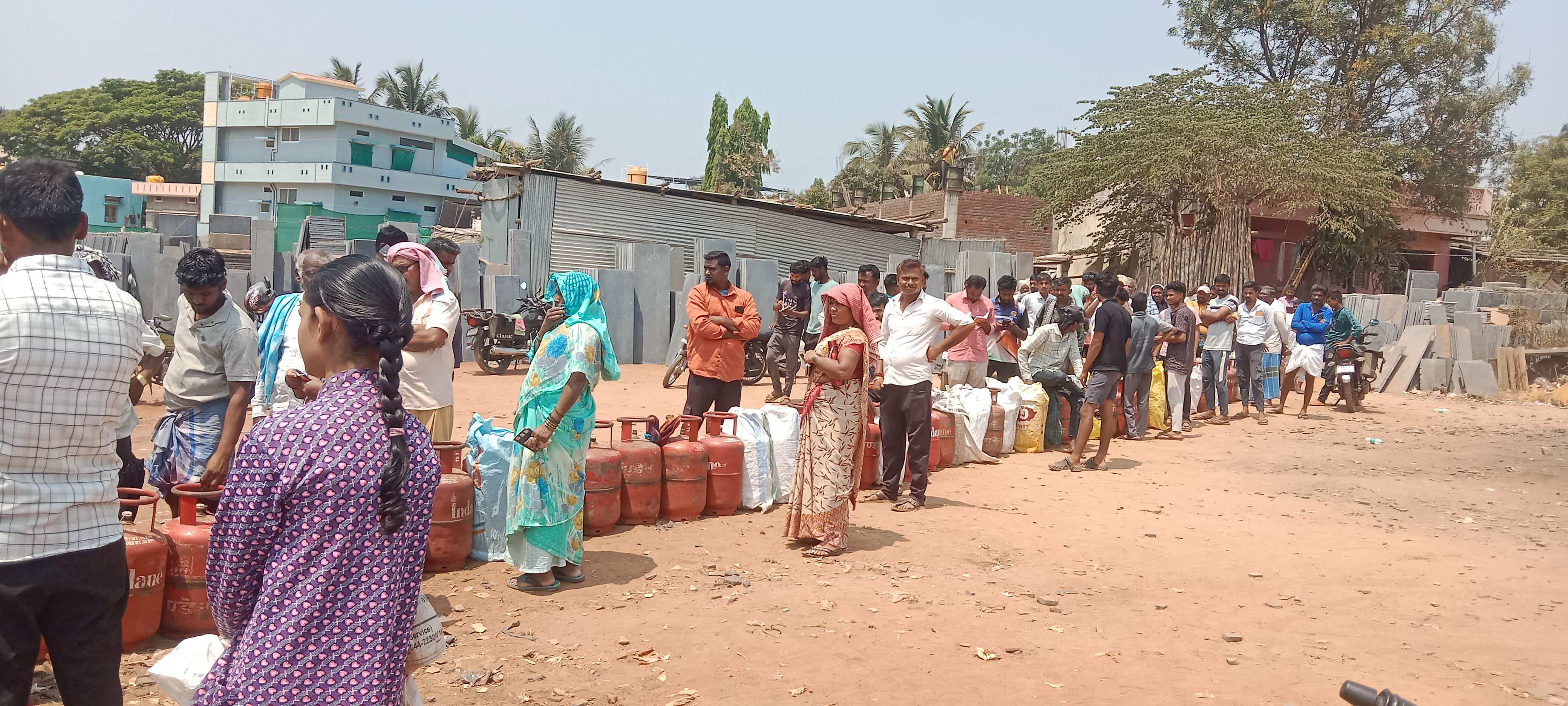 ಮಹಾದೇವ ತಾತಾ ಗ್ಯಾಸ್ ಏಜೆನ್ಸಿ ಮುಂದೆ ಬೆಳಗಿನಿಂದಲೇ ಜನ ಸಿಲಿಂಡರ್ಗಾಗಿ ಸರದಿ ಸಾಲಿನಲ್ಲಿ ನಿಂತು ಖರೀದಿಗೆ ಮುಂದಾಗಿದ್ದಾರೆ.