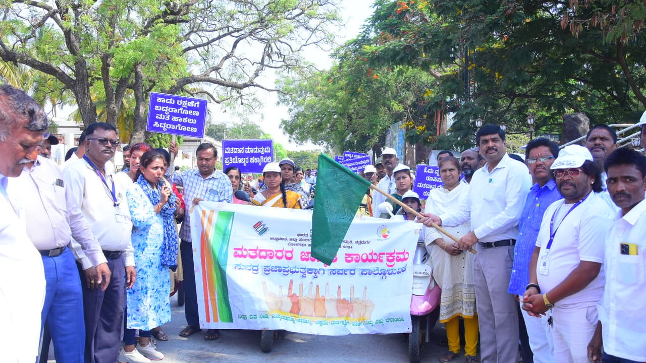 ಲೋಕಸಭಾ ಸಾರ್ವತ್ರಿಕ ಚುನಾವಣೆ-2024ರ ಸಂಬಂಧ ಮತದಾನದ ಬಗ್ಗೆ ಅರಿವು ಮೂಡಿಸಲು ಗ್ರಾಮೀಣ, ನಗರ ಹಾಗೂ ತಾಲೂಕು ವಿವಿದೋದ್ದೇಶ ಪುನರ್ವಸತಿ ಕಾರ್ಯಕರ್ತರು ಹಾಗೂ ವಿಕಲಚೇತನರಿಂದ ಶನಿವಾರ ಏರ್ಪಡಿಸಿದ್ದ ವಿಕಲಚೇತನರ ಬೈಕ್ ರ್ಯಾಲಿ ಎಲ್ಲರ ಗಮನ ಸೆಳೆಯಿತು.