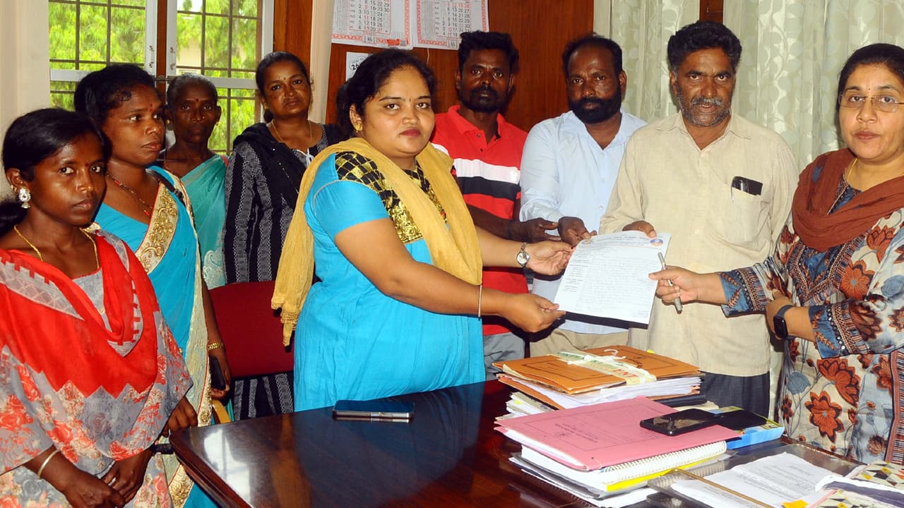 ನಿವೇಶನ ರಹಿತರಿಗೆ ನಿವೇಶನ ನೀಡುವಂತೆ ಆಗ್ರಹಿಸಿ ಜಿ. ಹೊಸಹಳ್ಳಿ ತಮಟೇಬೈಲು ಕಾಲೋನಿ ಗ್ರಾಮಸ್ಥರು ದಲಿತ ಸಂಘರ್ಷ ಸಮಿತಿ ನೇತೃತ್ವದಲ್ಲಿ ಬುಧವಾರ ಜಿಲ್ಲಾಧಿಕಾರಿ ಸಿ.ಎನ್.ಮೀನಾ ನಾಗರಾಜ್ ಅವರಿಗೆ ಮನವಿ ಸಲ್ಲಿಸಿದರು.ದಸಂಸ ಜಿಲ್ಲಾ ಪ್ರಧಾನ ಸಂಚಾಲಕ ಮರ್ಲೆ ಅಣ್ಣಯ್ಯ, ಮೂಡಿಗೆರೆ ತಾಲೂಕಿನ ಗೋಣಿಬೀಡು ಹೋಬಳಿ ಜಿ.ಹೊಸಳ್ಳಿಯ ತಮಟೇಬೈಲು ಕಾಲೋನಿ ನಿವಾಸಿಗಳು ಆರು ದಶಕಗಳಿಂದ ವಾಸಿಸುತ್ತಿರುವ ಹಿನ್ನೆಲೆಯಲ್ಲಿ ನಿವೇಶನ ಒದಗಿಸಿ ಅನುವು ಮಾಡಿಕೊಡಬೇಕು ಎಂದರು.ಹಲವಾರು ವರ್ಷಗಳಿಂದ ನಿವೇಶನ ರಹಿತರ ಸಮಸ್ಯೆಗಳಿಗೆ ಸ್ಪಂದಿಸುವಂತೆ ಹೋರಾಟ ರೂಪಿಸುತ್ತಾ ಬಂದಿದ್ದರೂ ತಾಲೂಕು, ಜಿಲ್ಲಾಡಳಿತವಾಗಲೀ ಯಾವುದೇ ಕ್ರಮ ಕೈಗೊಂಡಿರುವುದಿಲ್ಲ. ಈಚೆಗೆ ಸರ್ವೆ ನಂ.182 ರಲ್ಲಿ ಗುಡಿಸಲು ನಿರ್ಮಿಸಿಕೊಂಡು ವಾಸಿಸುತ್ತಿರುವ ವೇಳೆಯಲ್ಲಿ ಅರಣ್ಯ ಇಲಾಖೆ ಅಧಿಕಾರಿಗಳು, ಪಿಡಿಒ ಹಾಗೂ ರಾಜಸ್ವ ನಿರೀಕ್ಷಕರು ಸ್ಥಳಕ್ಕಾಗಮಿಸಿ ಅಹವಾಲು ಸ್ವೀಕರಿಸಿ ನಿವೇಶನ ಒದಗಿಸುವುದಾಗಿ ಭರವಸೆ ನೀಡಿದರು.ಹೀಗಾಗಿ ನಿವೇಶನ ರಹಿತರು ಭೂಮಿಗಾಗಿ ಒತ್ತಾಯಿಸಿ ದಸಂಸ ಮೂಲಕ ಮತದಾನ ಬಹಿಷ್ಕಾರ ನಿರ್ಧರಿಸಲಾಗಿತ್ತು. ಆದರೆ, ಅಧಿಕಾರಿಗಳ ಭರವಸೆ ಮೇರೆಗೆ ನಿರ್ಧಾರ ಕೈಬಿಡಲಾಗಿದೆ. ಹಾಗಾಗಿ ಜಿಲ್ಲಾಡಳಿತ ಸಂಬಂಧಿಸಿದಂತೆ ನೊಂದ ಕುಟುಂಬಗಳಿಗೆ ನಿವೇಶನ ಒದಗಿಸಿಕೊಡಬೇಕು ಎಂದು ಒತ್ತಾಯಿಸಿದರು.ಈ ಸಂದರ್ಭದಲ್ಲಿ ದಸಂಸ ಮೂಡಿಗೆರೆ ಸಂಚಾಲಕ ಸಂತೋಷ್, ಜಿಲ್ಲಾ ಮಹಿಳಾ ಸಂಚಾಲಕಿ ಆಶಾ, ತಾಲೂಕು ಸಂಚಾಲಕಿ ಯಮನ, ಗ್ರಾಮಸ್ಥರಾದ ಪ್ರಮೀಳಾ, ಕಮಲ, ರಮೇಶ್, ಸುಂದರಿ ಹಾಜರಿದ್ದರು. 17 ಕೆಸಿಕೆಎಂ 2ನಿವೇಶನ ನೀಡುವಂತೆ ಆಗ್ರಹಿಸಿ ಜಿ. ಹೊಸಹಳ್ಳಿಯ ತಮಟೇಬೈಲು ಕಾಲೋನಿ ಗ್ರಾಮಸ್ಥರು ದಲಿತ ಸಂಘರ್ಷ ಸಮಿತಿ ನೇತೃತ್ವದಲ್ಲಿ ಬುಧವಾರ ಜಿಲ್ಲಾ ಧಿಕಾರಿ ಸಿ.ಎನ್.ಮೀನಾ ನಾಗರಾಜ್ ಗೆ ಮನವಿ ಸಲ್ಲಿಸಿದರು.