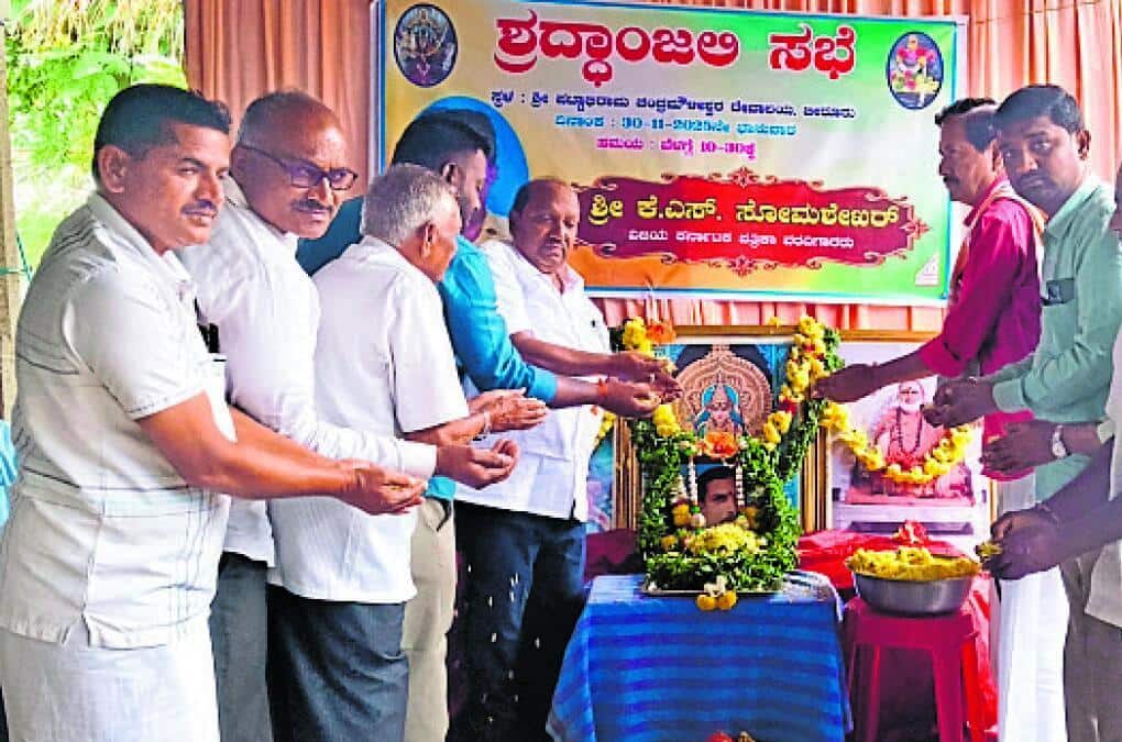 ಶ್ರೀಪಟ್ಟಾಭಿರಾಮ ಚಂದ್ರಮೌಳೀಶ್ವರ ದೇವಸ್ಥಾನದ ಕಾರ್ಯದರ್ಶಿಯಾಗಿದ್ದ ಅವರಿಗೆ ‘ಶ್ರೀರಾಮ ಕುಟೀರ’ ಎಂಬ ಸಮು ದಾಯ ಭವನ ನಿರ್ಮಿಸುವ ಕನಸಿತ್ತು. ಅವರ ಆಶಯದಂತೆ ಸಮುದಾಯ ಭವನ ನಿರ್ಮಾಣಕ್ಕೆ ಎಲ್ಲರ ಮನವೊಲಿಸಿ ನನ್ನಿಂದಾದ ಸಹಕಾರ ನೀಡುತ್ತೇನೆ ಎಂದು ಭರವಸೆ ನೀಡಿದರು.ಮಾಲು ಸ್ಲೀಪರ್ಸ್ ವ್ಯವಸ್ಥಾಪಕ ವೆಂಕಟೇಶ ಜಿ. ಒಡೆಯರ್, ‘ಸೋಮಣ್ಣ ಸಮಾಜ ಮುಖಿ ಚಟುವಟಿಕೆಗಳಿಗೆ ಜೇಸಿಐ, ಕಸಾಪ, ವಿಪ್ರ ಸೌಹಾರ್ದ ಸಹಕಾರ ಬ್ಯಾಂಕ್, ಶ್ರೀರಾಮ ಸೇವಾ ಸಂಘ, ವಿವಿಧ ಶಾಲೆ–ಕಾಲೇಜುಗಳ ಹಿರಿಯ ವಿದ್ಯಾರ್ಥಿಗಳ ಸಂಘದಂತೆ ಹಲವಾರು ಸಂಘಟನೆಗಳಲ್ಲಿ ಗುರುತಿಸಿಕೊಳ್ಳುವ ಜತೆಗೆ ಅಭಿವೃದ್ಧಿ ಪರ ಚಿಂತನೆಗಳಿಗೆ ಸದಾ ತುಡಿಯುತ್ತಿದ್ದರು’ ಎಂದರು. ಕನ್ನಡ ಸಂಘದ ಅಧ್ಯಕ್ಷ ಎಚ್.ಸಿ. ವಿಶ್ವನಾಥ್ ಗೌಡ , ಪುರಸಭೆ ಮಾಜಿ ಅಧ್ಯಕ್ಷೆ ಸವಿತಾ ರಮೇಶ್ , ಪುರಸಭೆ ಮಾಜಿ ಸದಸ್ಯ ಬಿ.ಆರ್. ಮೋಹನ್ ಕುಮಾರ್, ಶಿಕ್ಷಕ ಸಂಪತ್ ಕುಮಾರ್, ಪತ್ರಕರ್ತರಾದ ವಿಜಯಕುಮಾರ್, ಚೇತನ್ ಬೇಲೇನಹಳ್ಳಿ, ವೈ.ಕೆ. ಸೂರ್ಯನಾರಾಯಣ, ಓಂಕಾರಮೂರ್ತಿ, ನಾಗರಿಕರ ಪರವಾಗಿ ಬಳೆಗಾರ ಬಿ.ವಿ. ಮಹೇಶ್ವರಪ್ಪ ಮತ್ತು ಸೋಮಶೇಖರ್ ಕುಟುಂಬ ಸದಸ್ಯರು ಒಡನಾಟದ ಅನುಭವ ಹಂಚಿಕೊಂಡರು. ಪಿಎಂಶ್ರೀ ಶಾಲೆ ಮುಖ್ಯಶಿಕ್ಷಕರು, ಸಹಶಿಕ್ಷಕರು, ಸೀತಾರಾಮ ಮಹಿಳಾ ಮಂಡಳಿ, ಶ್ರೀರಾಮಸೇವಾ ಸಂಘದ ಸದಸ್ಯರು, ಹಿರಿಯ ಪತ್ರಕರ್ತ ಮುರುಗೇಶಪ್ಪ, ದೇವರಮನೆ ಗಿರೀಶ್, ಡಾ.ಎ.ಎಸ್. ಸಜ್ಜನರ್, ಡಾ. ಅನಂತಪದ್ಮನಾಭ ಭಾಗವಹಿಸಿದ್ದರು.1 ಬೀರೂರು 1ಬೀರೂರು ಪಟ್ಟಣದ ಶ್ರೀಪಟ್ಟಾಭಿರಾಮ ಚಂದ್ರಮೌಳೀಶ್ವರ ದೇವಾಲಯದ ಆವರಣದಲ್ಲಿ ಹಮ್ಮಿಕೊಂಡಿದ್ದ ಹಿರಿಯ ಪತ್ರಕರ್ತ ಕೆ.ಎಸ್. ಸೋಮಶೇಖರ್ ಅವರ ಶ್ರದ್ಧಾಂಜಲಿ ಸಭೆಯಲ್ಲಿ ಮಾಜಿ ಶಾಸಕ ವೈಎಸ್ವಿ. ದತ್ತ ಭಾವಚಿತ್ರಕ್ಕೆ ಪುಷ್ಪನಮನ ಸಲ್ಲಿಸಿದರು