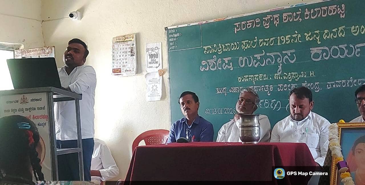 ತಾಲೂಕಿನ ಕಿಲ್ಲಾರಹಟ್ಟಿ ಗ್ರಾಮದ ಸರ್ಕಾರಿ ಪ್ರೌಢಶಾಲೆಯಲ್ಲಿ ತಾವರಗೇರಾ ಪಟ್ಟಣದ ಬುದ್ಧ ವಿಹಾರ ಸ್ಪರ್ಧಾತ್ಮಕ ಪರೀಕ್ಷೆಗಳ ತರಬೇತಿ ಕೇಂದ್ರದಿಂದ ನಡೆದ ದೇಶದ ಮೊದಲ ಮಹಿಳಾ ಶಿಕ್ಷಕಿ, ಮಹಿಳಾ ಶಿಕ್ಷಣದ ರೂವಾರಿ ಸಾವಿತ್ರಿಬಾಯಿ ಫುಲೆ ಜನ್ಮದಿನದ ಕಾರ್ಯಕ್ರಮದಲ್ಲಿ ಉಪನ್ಯಾಸ ನೀಡಿ ಮಾತನಾಡಿದರು.ಸಾವಿತ್ರಿಬಾಯಿ ಫುಲೆ ಸಾಮಾಜಿಕ ಅಸಮಾನತೆಯ ವಿರುದ್ಧ ಹೋರಾಡುವ ಮೂಲಕ ಕೆಳವರ್ಗದ ಶೋಷಿತರನ್ನು ಅತ್ಯಂತ ಅಮಾನವೀಯವಾಗಿ ನಡೆಸಿಕೊಳ್ಳುವ ಅಂದಿನ ಜಾತಿ ವ್ಯವಸ್ಥೆಯ ವಿರುದ್ಧ ಶಿಕ್ಷಣದ ಅಸ್ತ್ರ ಬಳಸಿ ಸಾಮಾಜಿಕ ಕ್ರಾಂತಿಯ ನಡೆಸಲು ಶ್ರಮಿಸಿದ್ದಾರೆ ಎಂದು ತಿಳಿಸಿದರು.