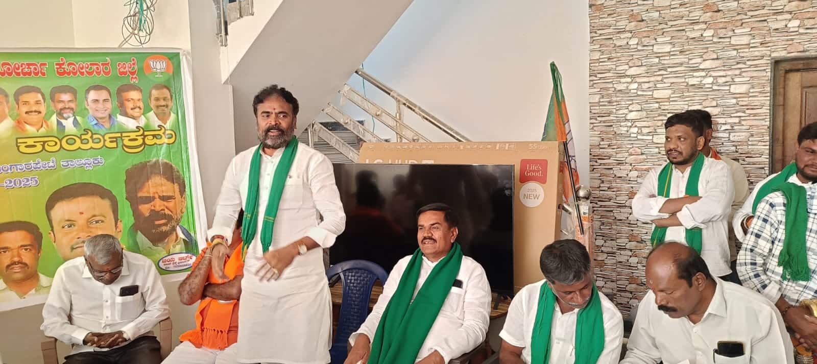 ಕೋಲಾರ ಜಿಲ್ಲೆಯಲ್ಲಿ ಬಿಜೆಪಿ ಶಾಸಕರಿಲ್ಲ, ಮುಂಬರುವ ಎಲ್ಲಾ ಚುನಾವಣೆಗಳಲ್ಲಿ ಬಿಜೆಪಿ ಅಭ್ಯರ್ಥಿಗಳನ್ನು ಗೆಲ್ಲಿಸಿಕೊಳ್ಳಲು ನರೇಂದ್ರ ಮೋದಿ ರವರು ಮಾಡಿರುವಂತಹ ಉತ್ತಮ ಕೆಲಸಗಳನ್ನು ಜನರಿಗೆ ತೋರಿಸಿ ಪಕ್ಷವನ್ನು ಬಲಿಷ್ಠ ಗೊಳಿಸಬೇಕು ಎಂದರು.ಬಿಜೆಪಿ ರೈತ ಮೋರ್ಚಾ ರಾಜ್ಯ ಅಧ್ಯಕ್ಷ ಎ.ಎಸ್.ನಡಹಳ್ಳಿ ಮಾತನಾಡಿ, ರೈತರಿಗೆ, ಮಹಿಳೆಯರಿಗೆ, ಯುವಕರಿಗೆ, ಅಲ್ಪಸಂಖ್ಯಾತರಿಗೆ, ಹಿಂದುಳಿದ ವರ್ಗ ಸೇರಿ ಎಲ್ಲಾ ವರ್ಗದ ಜನರಿಗೂ ಮೋದಿಯವರಿಂದ ಸ್ವಾವಲಂಬನೆ ಜೀವನ ನಡೆಸಿಕೊಡಲು ಅನೇಕ ಯೋಜನೆಗಳನ್ನು ರೂಪಿಸಿ ಅನುಕೂಲ ಮಾಡಿಕೊಟ್ಟಿದ್ದಾರೆ. ಅದನ್ನು ನಮ್ಮ ಜನರಿಗೆ ತಿಳಿಸುವಂತಾಗಬೇಕು ಜೊತೆಗೆ ಸದುಪಯೋಗವಾಗುವಂತೆ ಮಾಡಬೇಕು ಎಂದರು.