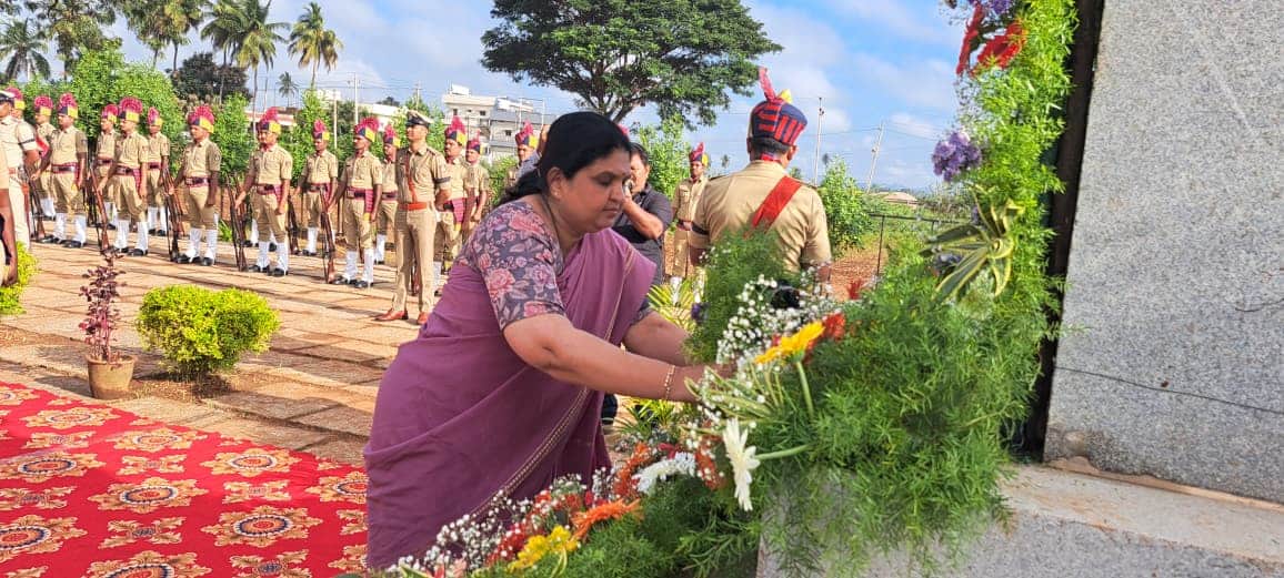 ಪೊಲೀಸ್ ಹುತಾತ್ಮರಿಗೆ ಗೌರವ ಸಮರ್ಪಣೆ:ಕಾರ್ಯಕ್ರಮದ ಆರಂಭದಲ್ಲಿ ಪೊಲೀಸ್ ಸ್ಮಾರಕಕ್ಕೆ ಜಿಲ್ಲಾಧಿಕಾರಿ, ಜಿಲ್ಲಾ ಪೊಲೀಸ್ ವರಿಷ್ಠಾಧಿಕಾರಿ, ಇತರೆ ಅಧಿಕಾರಿಗಳು ಹಾಗೂ ಹಲವು ಗಣ್ಯರು ಪುಷ್ಪನಮನ ಸಲ್ಲಿಸಿದರು. ಇತ್ತೀಚೆಗೆ ಹುತಾತ್ಮರಿಗೆ ಗೌರವ ಸಮರ್ಪಣೆಗಾಗಿ ಗಾಳಿಯಲ್ಲಿ ಮೂರು ಸುತ್ತು ಗುಂಡು ಹಾರಿಸಿ ಹಾಗೂ ಮೌನಾಚರಣೆ ಆಚರಿಸಲಾಯಿತು.